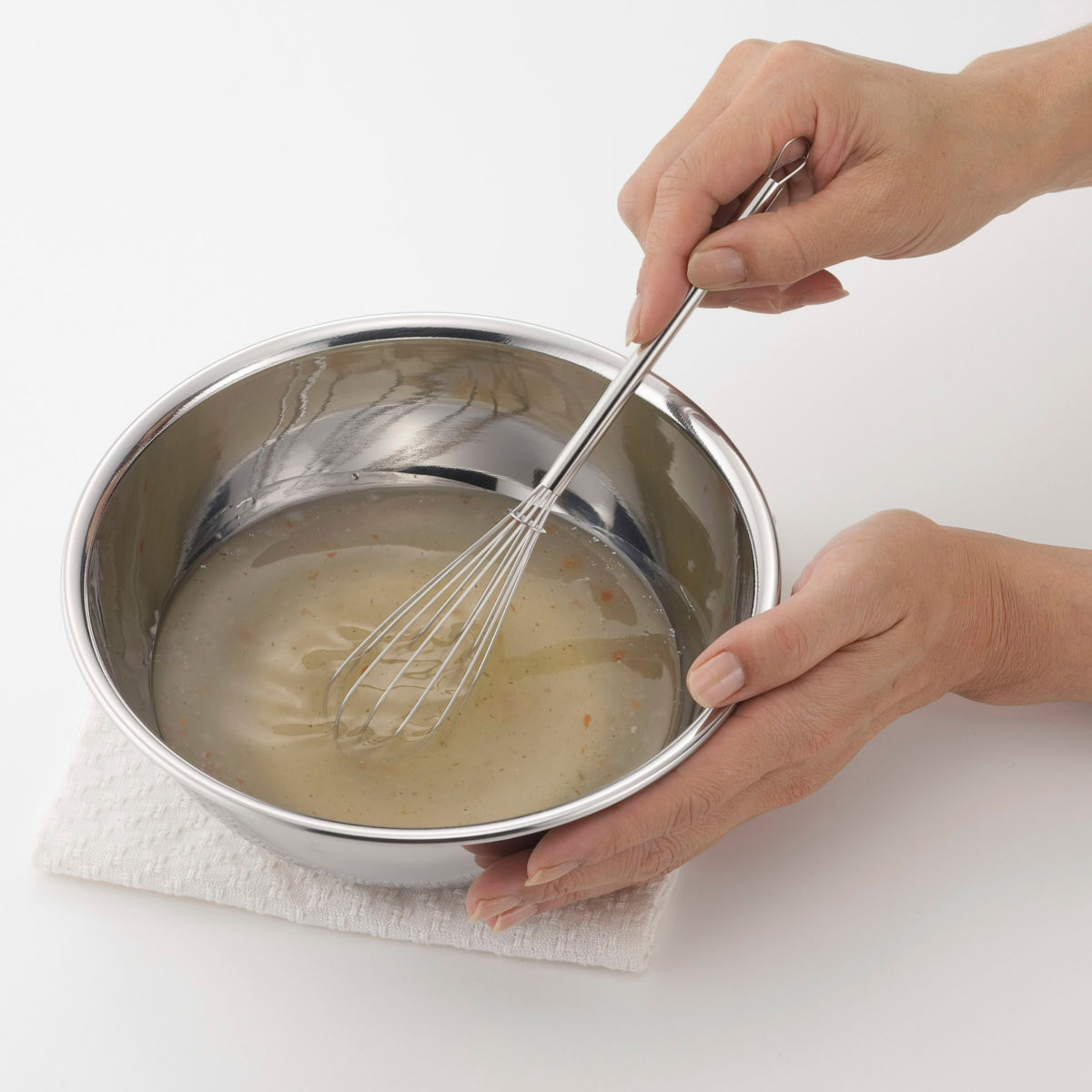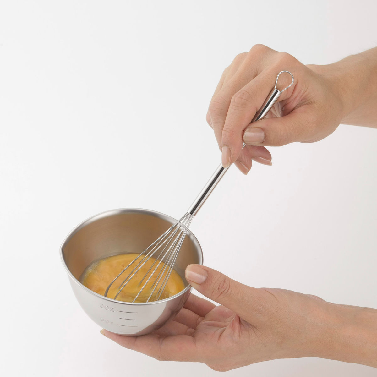 ●小さなボウルでの泡立てやかき混ぜにちょうど良い、スリム形状の泡立て器です。