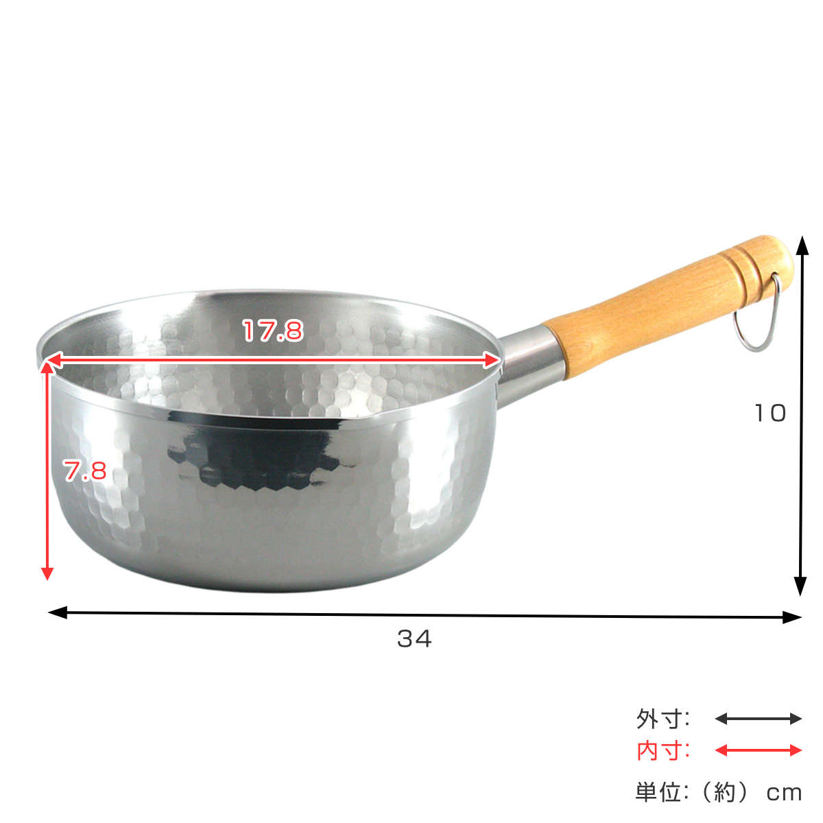 職人仕上げの美しい槌目模様が美しく、傷が目立ちにくく見た目も長くきれいに保てます。丈夫なステンレス製で耐久性が高く、日常使いにしっかり応えてくれるつくりです。