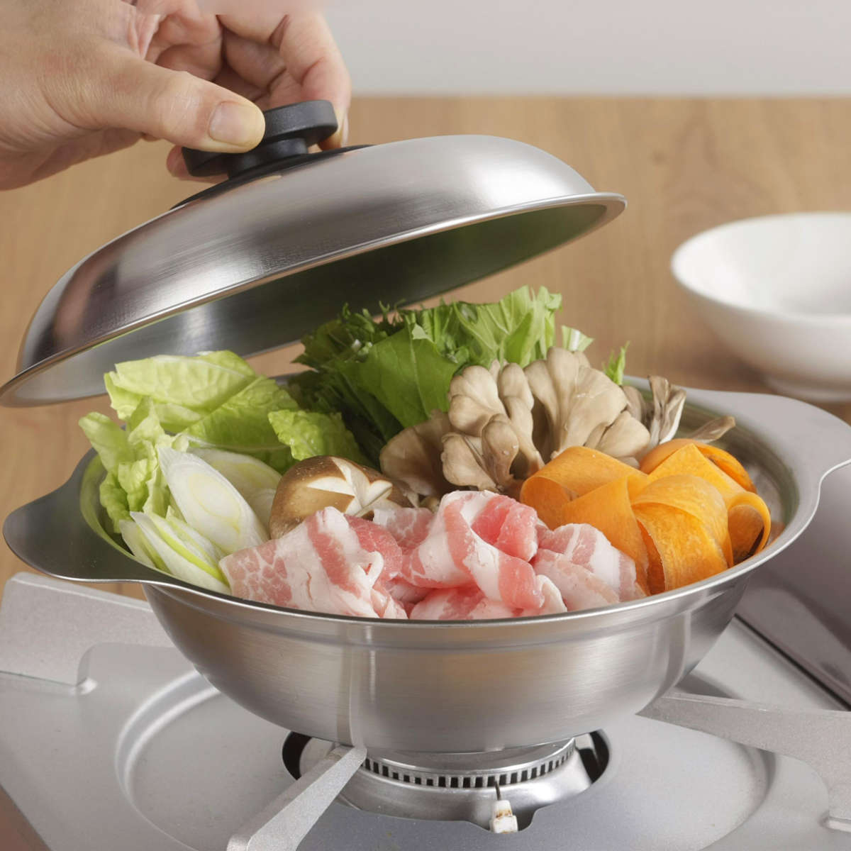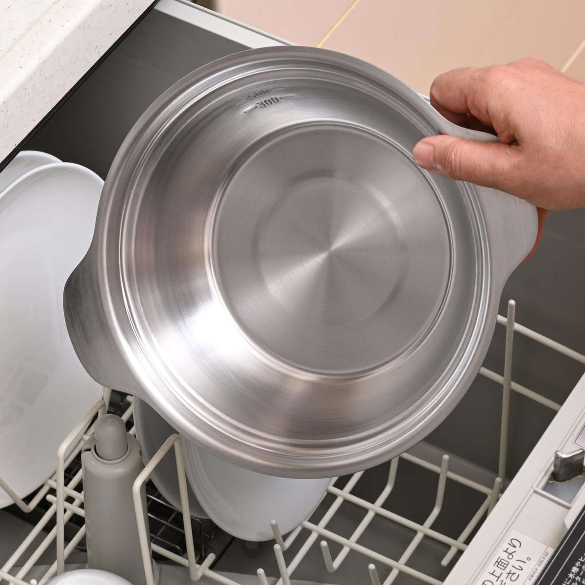 鍋本体は ステンレス一体型で食洗機に対応しており、日々のお手入れがとても簡単です。ステンレス素材は 汚れが落ちやすいため、いつでも清潔に使えます。