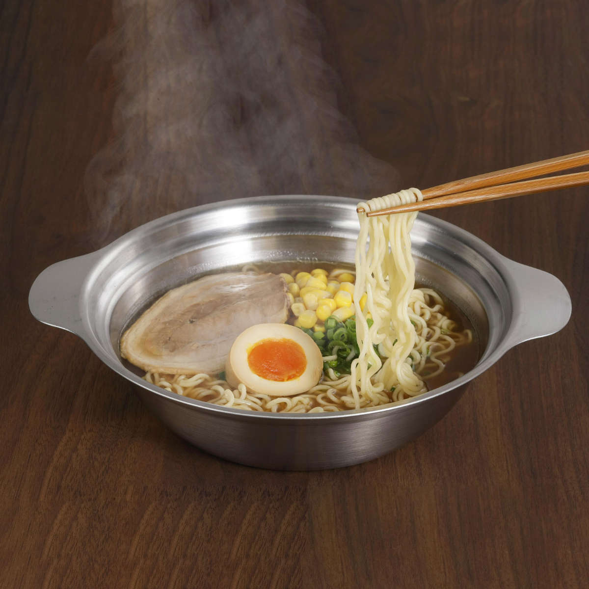 忙しい毎日にちょうどいい、どんぶり形状のステンレス鍋です。ラーメンやうどんを鍋でそのまま調理し、器に移し替えることなく食卓へ直行できます。洗い物が減って、手間も時間もぐっと節約できます。
