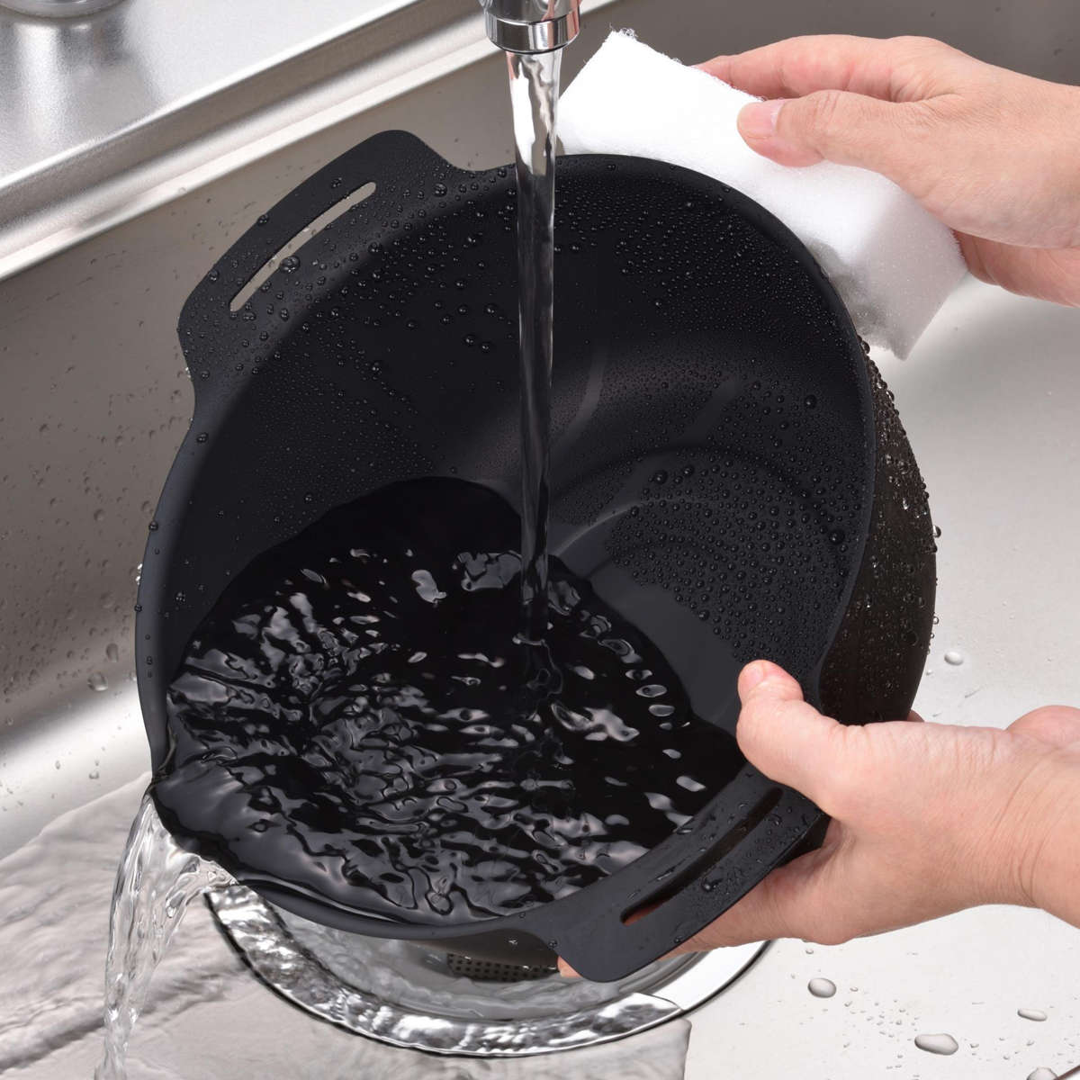 継ぎ目のない一体成型で、汚れが溜まりにくくお手入れしやすいデザインです。一枚板から作られた継ぎ目ゼロ構造で角や段差がなく、油汚れも引っかかりにくいので、サッと洗えて清潔に保てます。