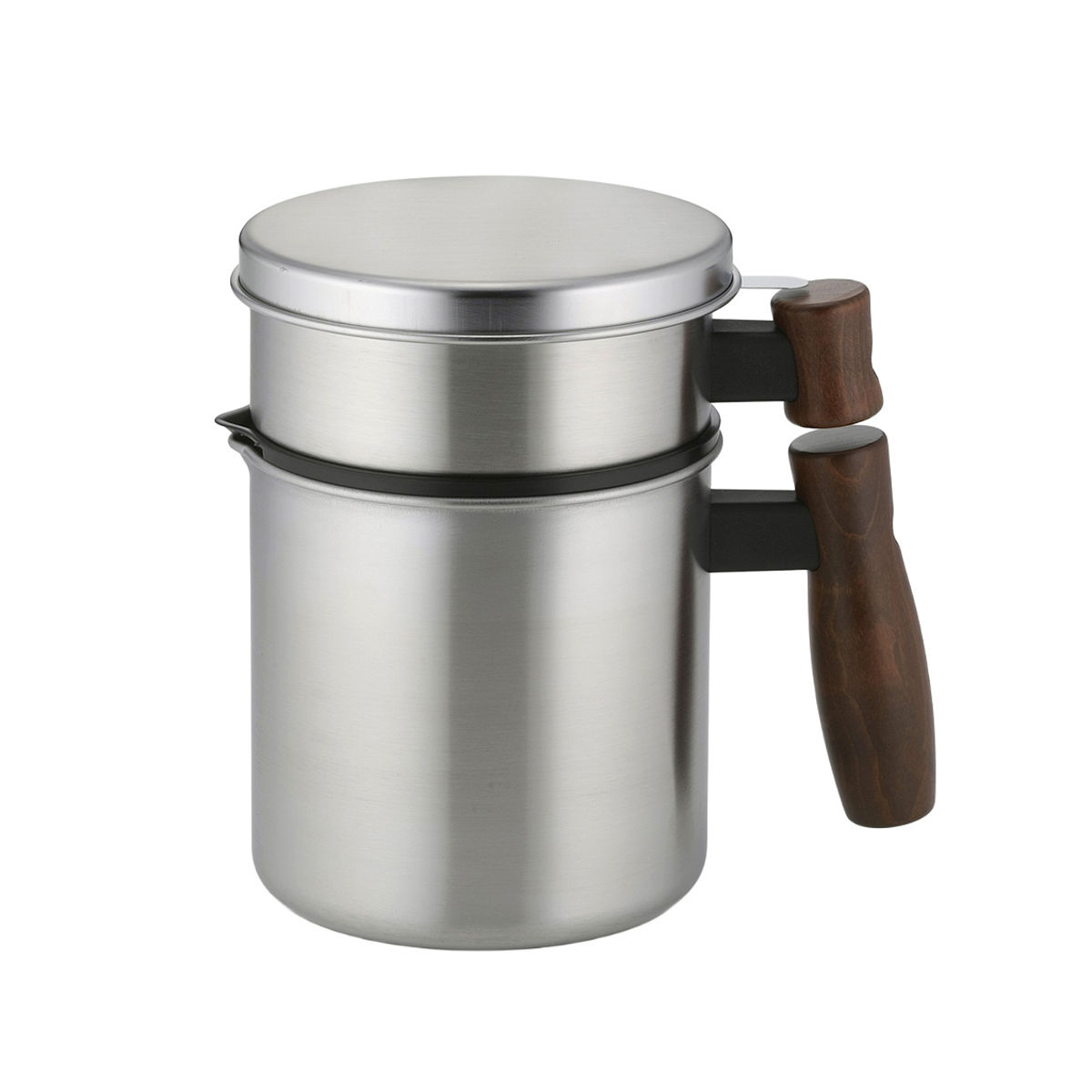 キッチンに馴染むデザインと使いやすさを兼ね備えたオイルポットです。光沢が美しいステンレスと天然木の持ち手を組み合わせたおしゃれなデザインは、キッチンに置いてもインテリアのように馴染みます。コンパクトなサイズながら、本体には最大約800mlの油を保存できます。