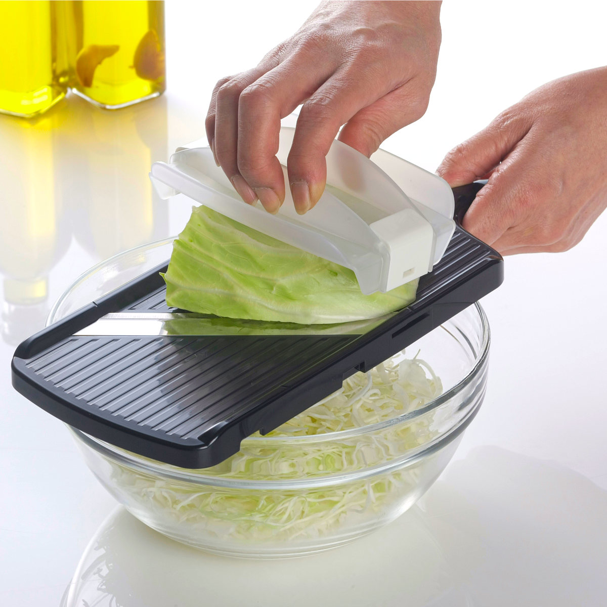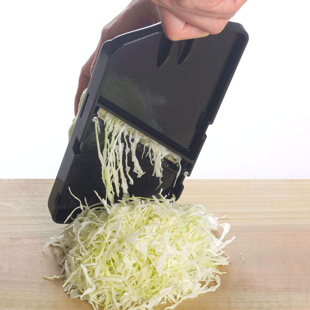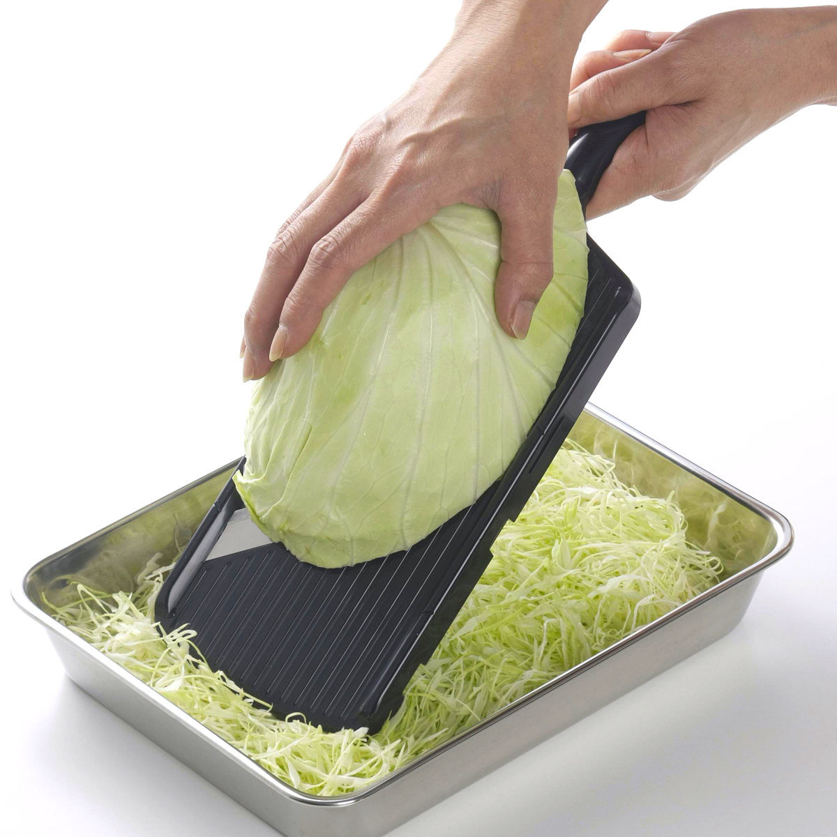 本格的な刃付けとこだわりの斜め刃角度により、軽い力でスムーズにスライスできるのが特長です。忙しい日でも手軽に、ふんわりとした食感の野菜料理を楽しめます。キャベツの千切りはもちろん、玉ねぎのスライスなど下ごしらえもスピーディーに行えます。