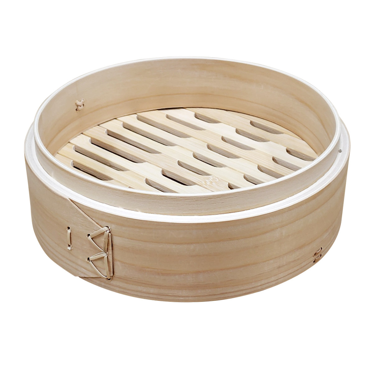 留め具にも天然素材を使用し、細部にまでこだわっています。蒸し上がりとともにふんわりと広がるひのきの上品な香りが、料理の風味を一層引き立てます。