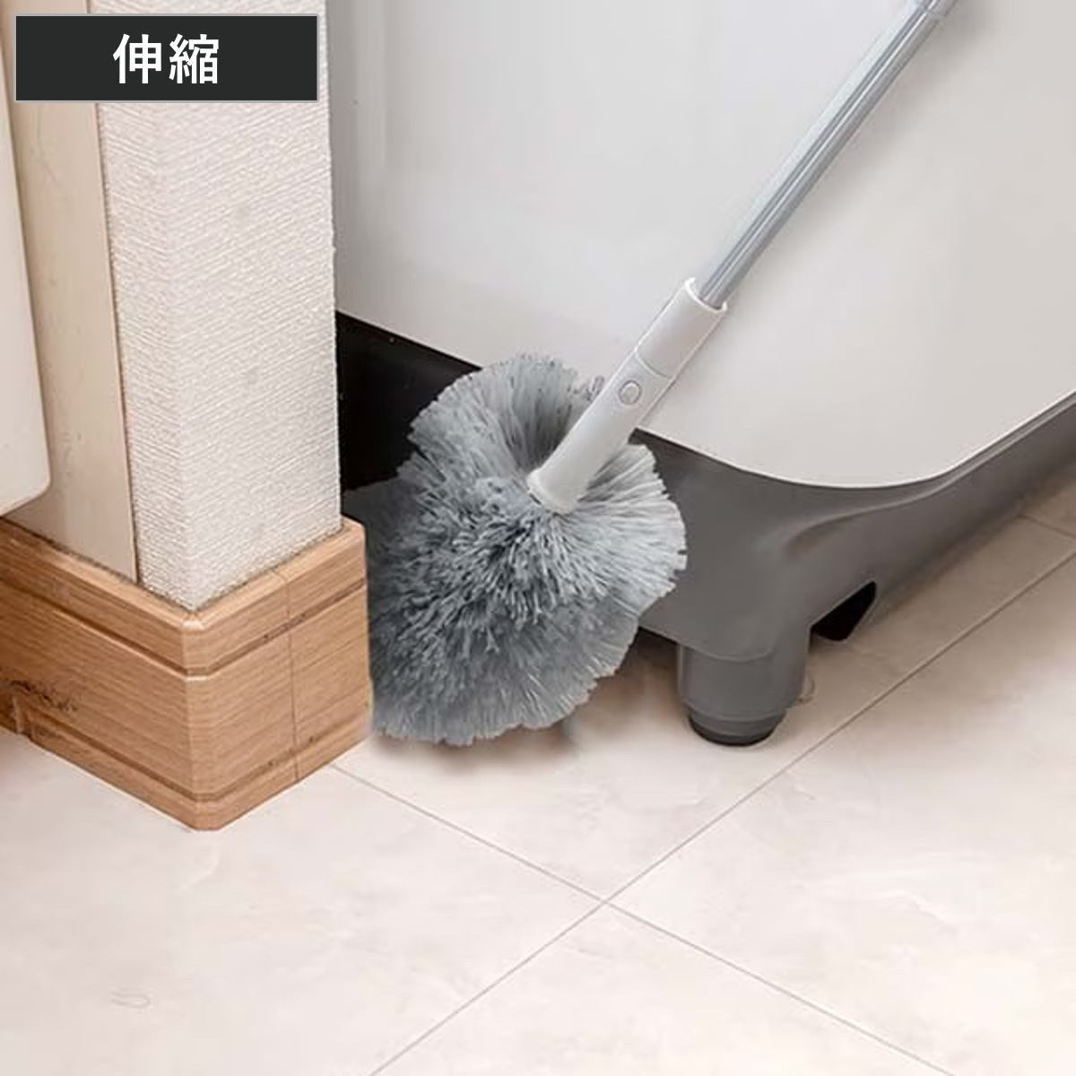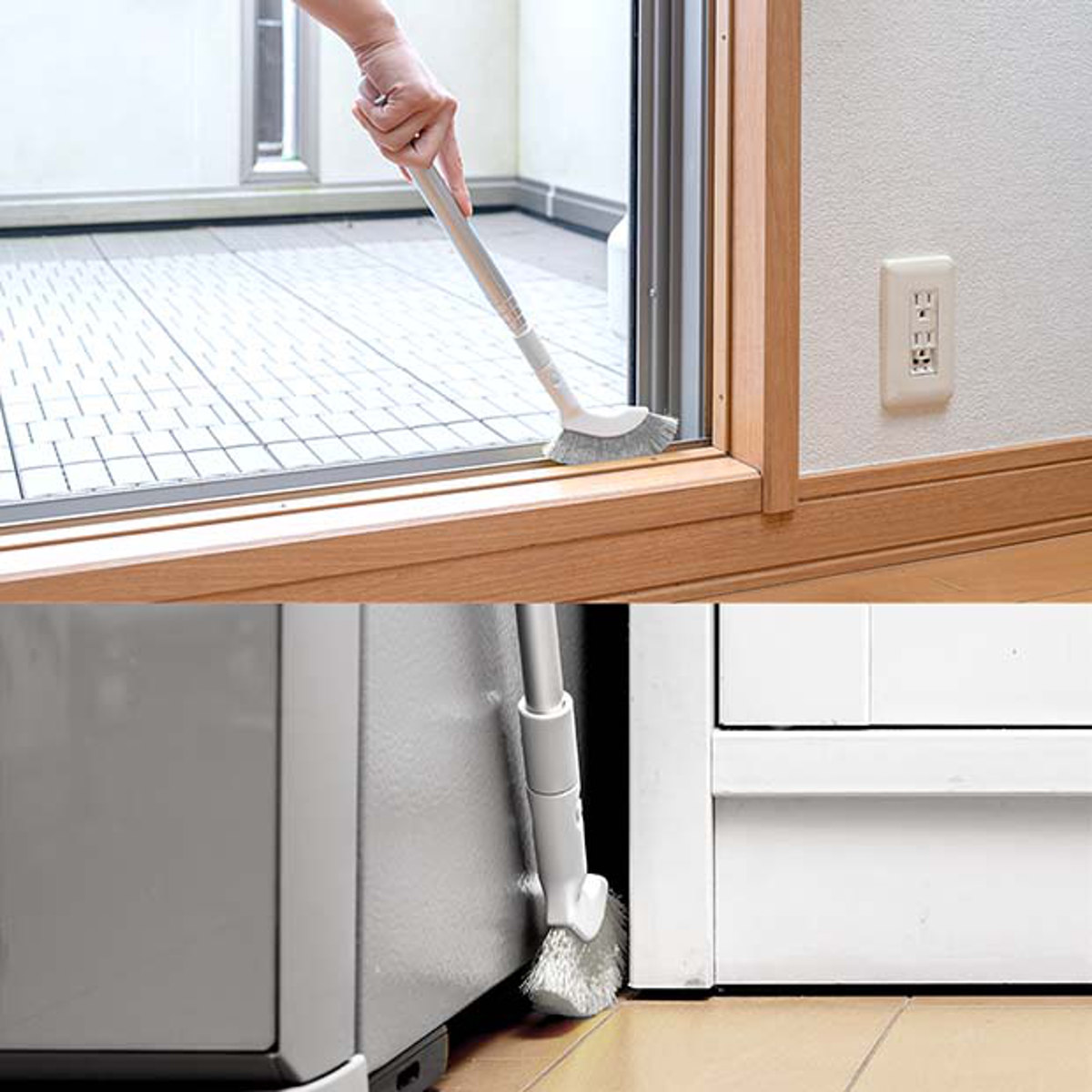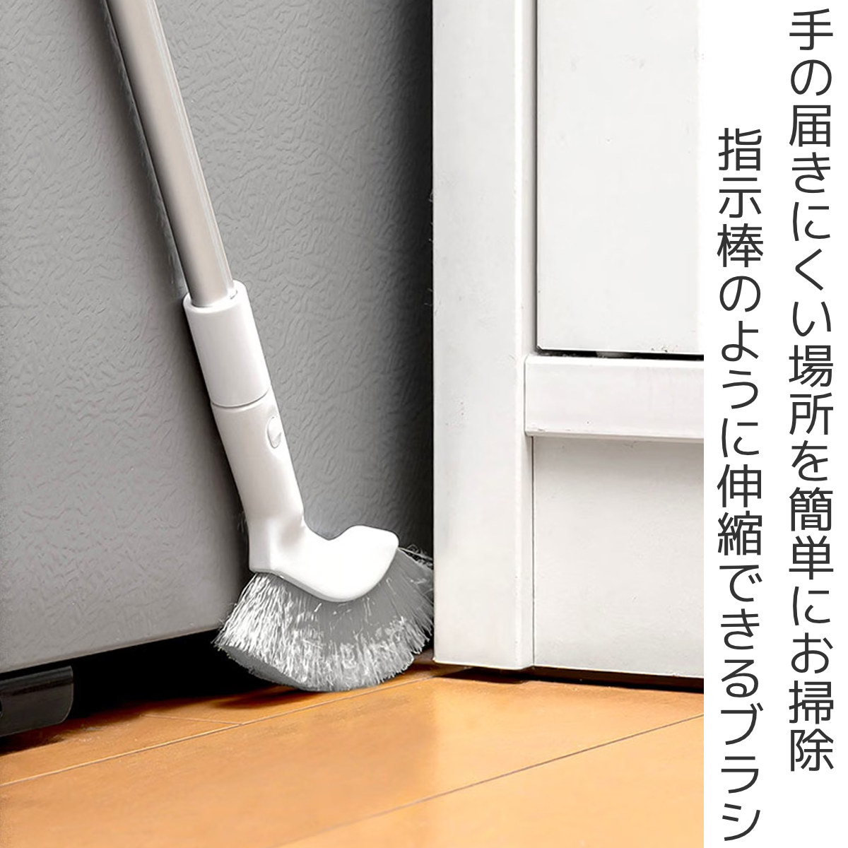 簡単に柄の長さを調整できるので、洗濯機周り、冷蔵庫周り、テレビの台周りのすき間、サッシレール、ドアレール、巾木などの狭い場所から手元のお掃除にもお使い頂けます。幅が約2cmまでの狭いすき間に入り込むことができます。
