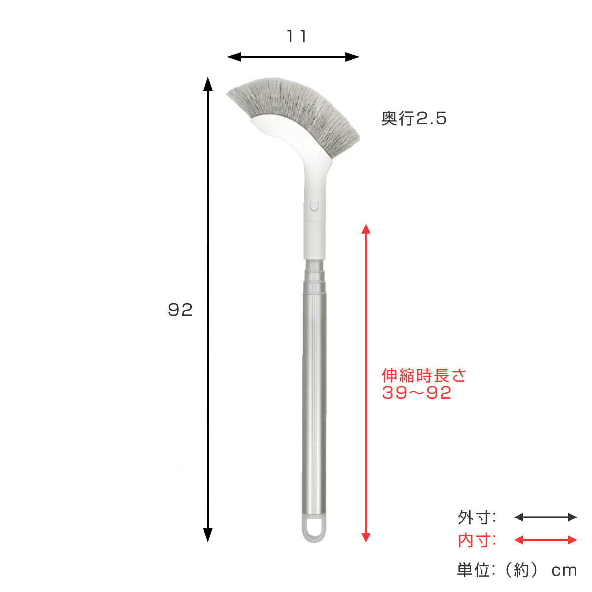 - ヘッド、ブラシ:ポリプロピレン 柄:アルミ