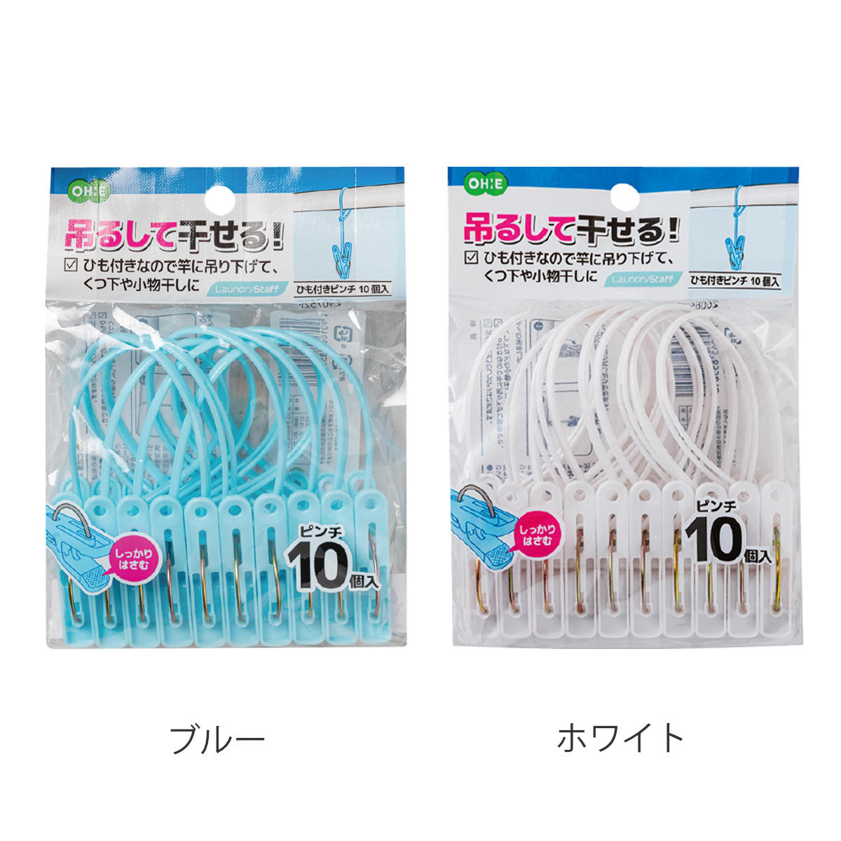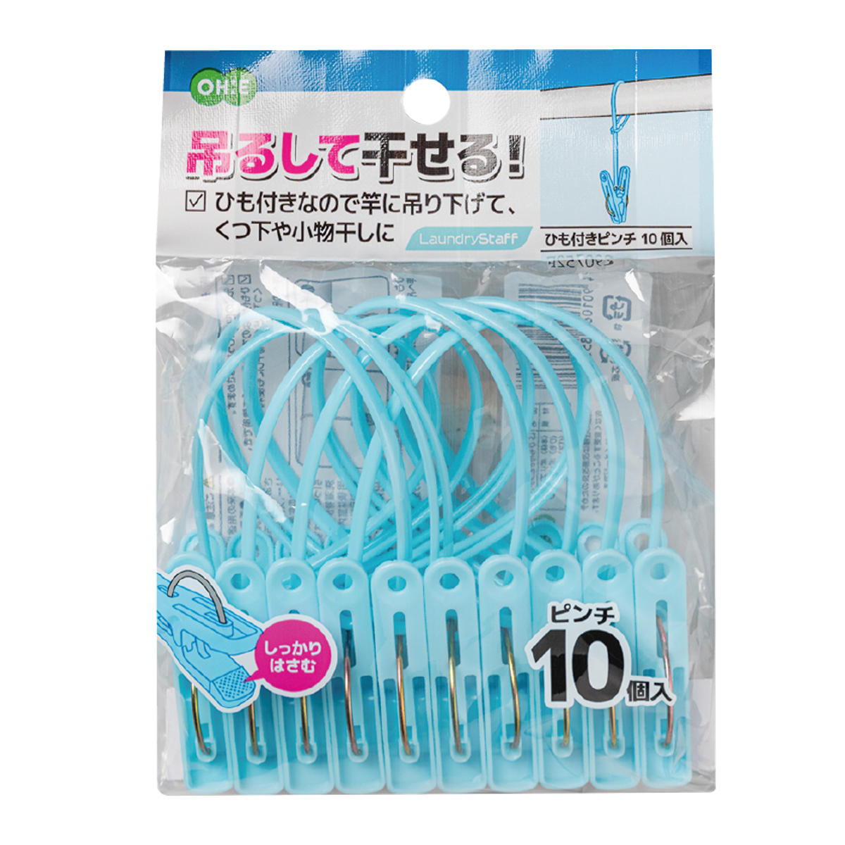 ●竿に吊り下げて使用できるひも付きなので、くつ下などの小物干しに便利です。
