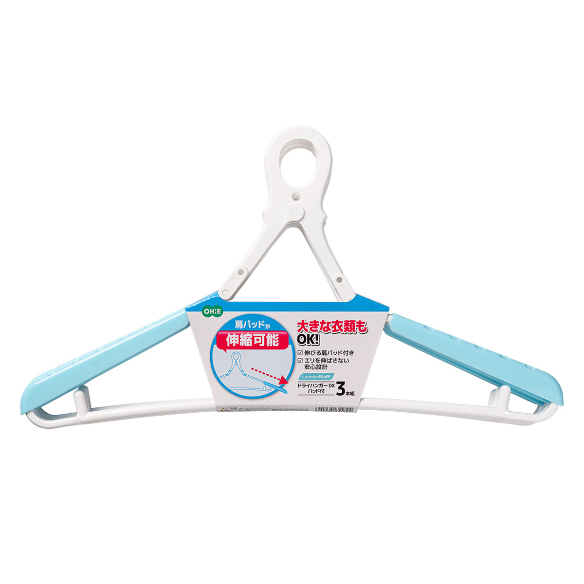 ●伸縮可能な肩パッドで大きめサイズの衣類にも対応するハンガーです。