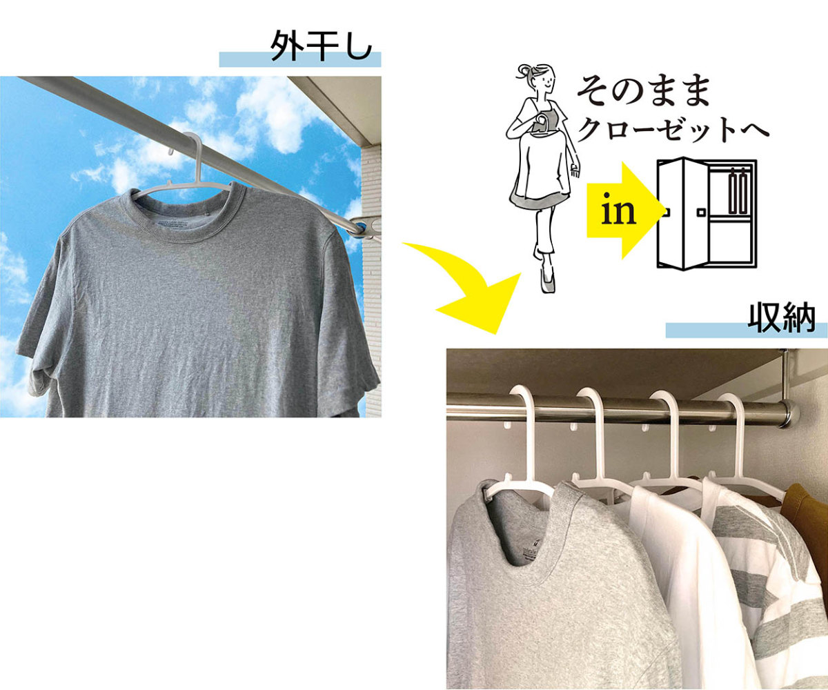 ●スリム設計でクローゼット内でもかさばらず、洗濯後はそのまま収納できます。