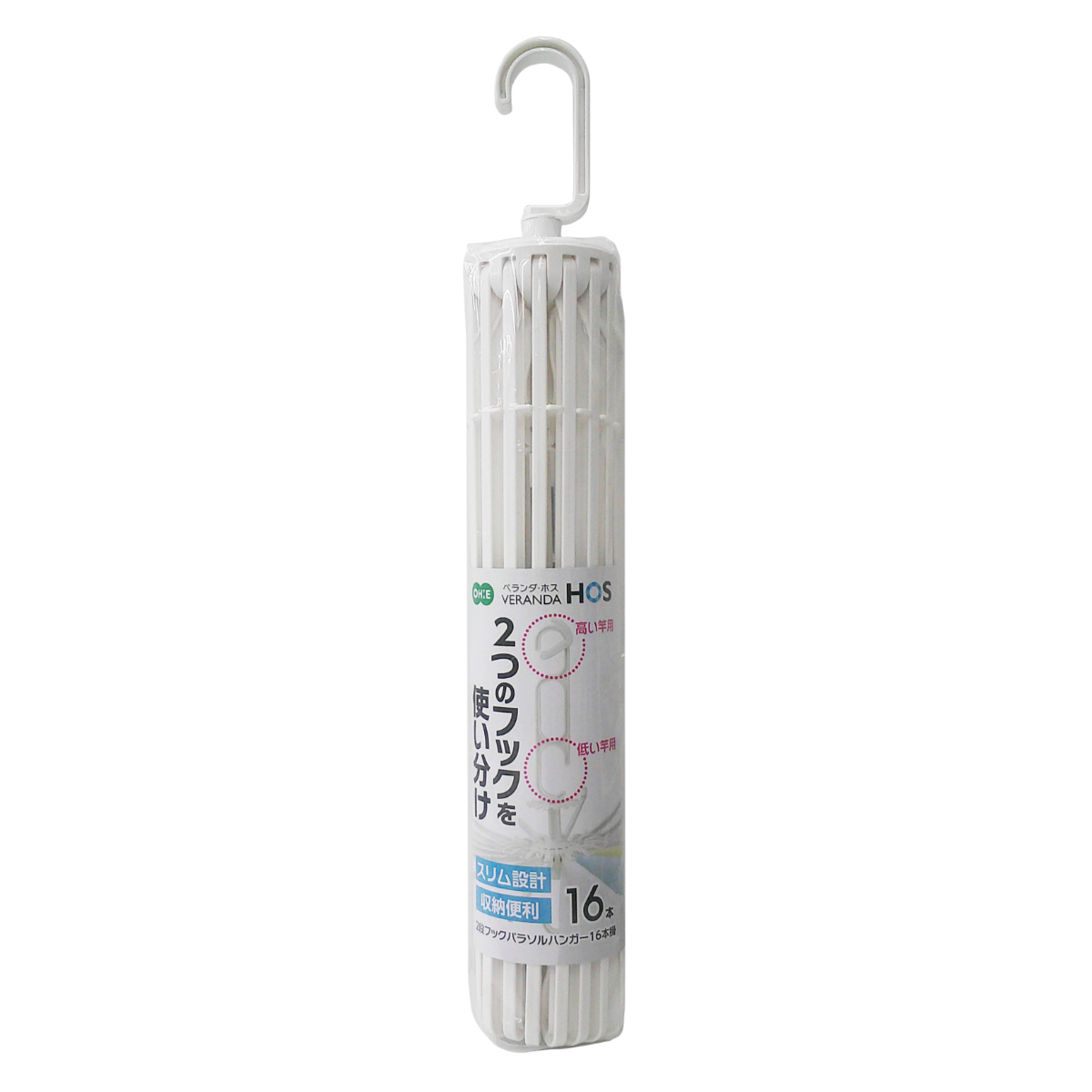 2段フックで干しやすいパラソルハンガー 16本