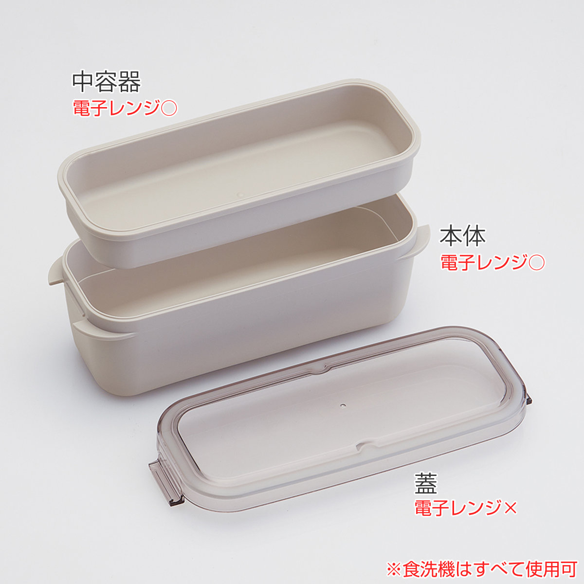 | 材質 | 蓋:AS樹脂 本体・中容器:ポリプロピレン パッキン:熱可塑性エラストマー |