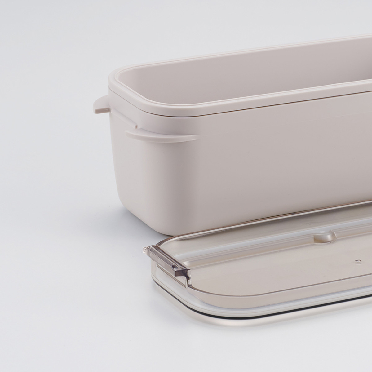 フタを押すだけでロック、つまみを持ち上げるだけで開けられる、カンタン開閉です。硬すぎず、ゆるすぎない絶妙な操作感で、「開ける・閉める」の動作が快適になり、忙しい朝もストレスフリー。