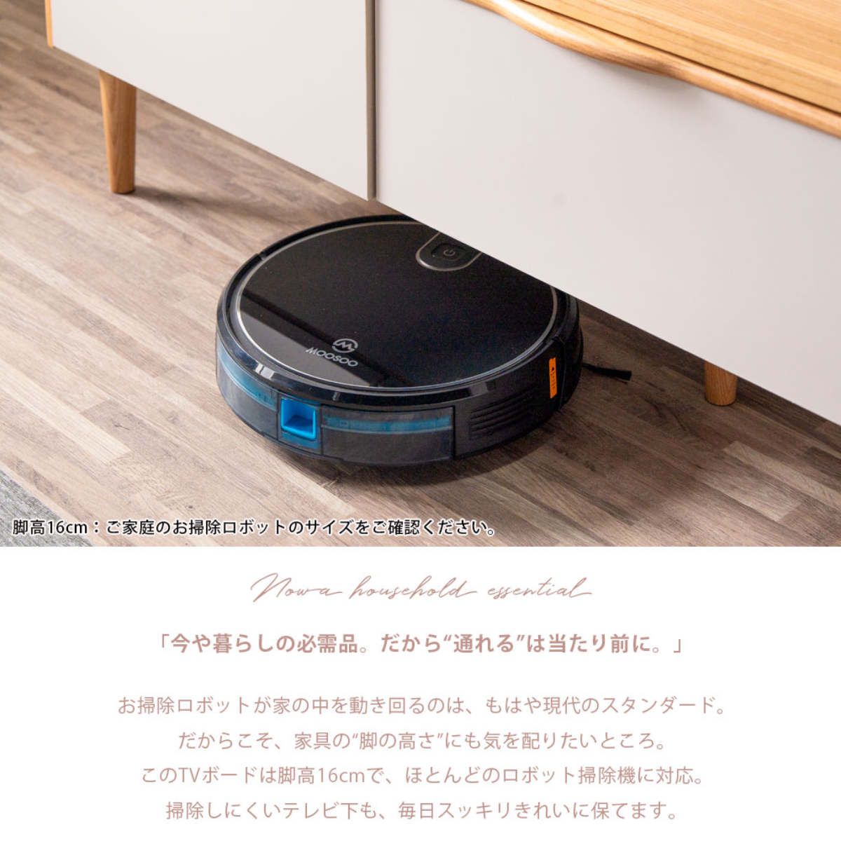 天然木製の脚部は、高さ約16cm。一般的なお掃除ロボットが通れる高さ設計なので、いつでも清潔を保つことができます。