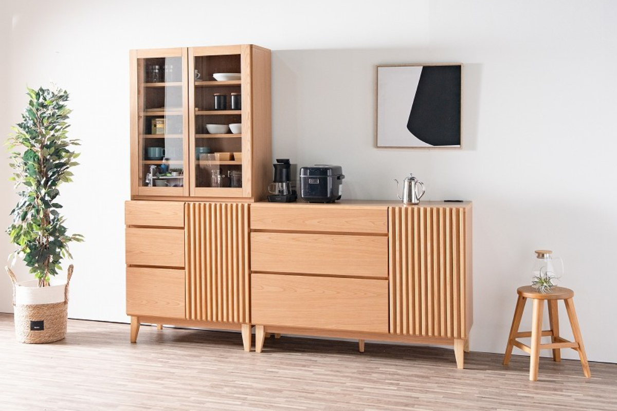 同シリーズで食器棚や、キッチンカウンターのサイズ違いもご用意しています。組み合わせて設置することで、お部屋全体にまとまりが生まれ、統一感のある空間を演出します。