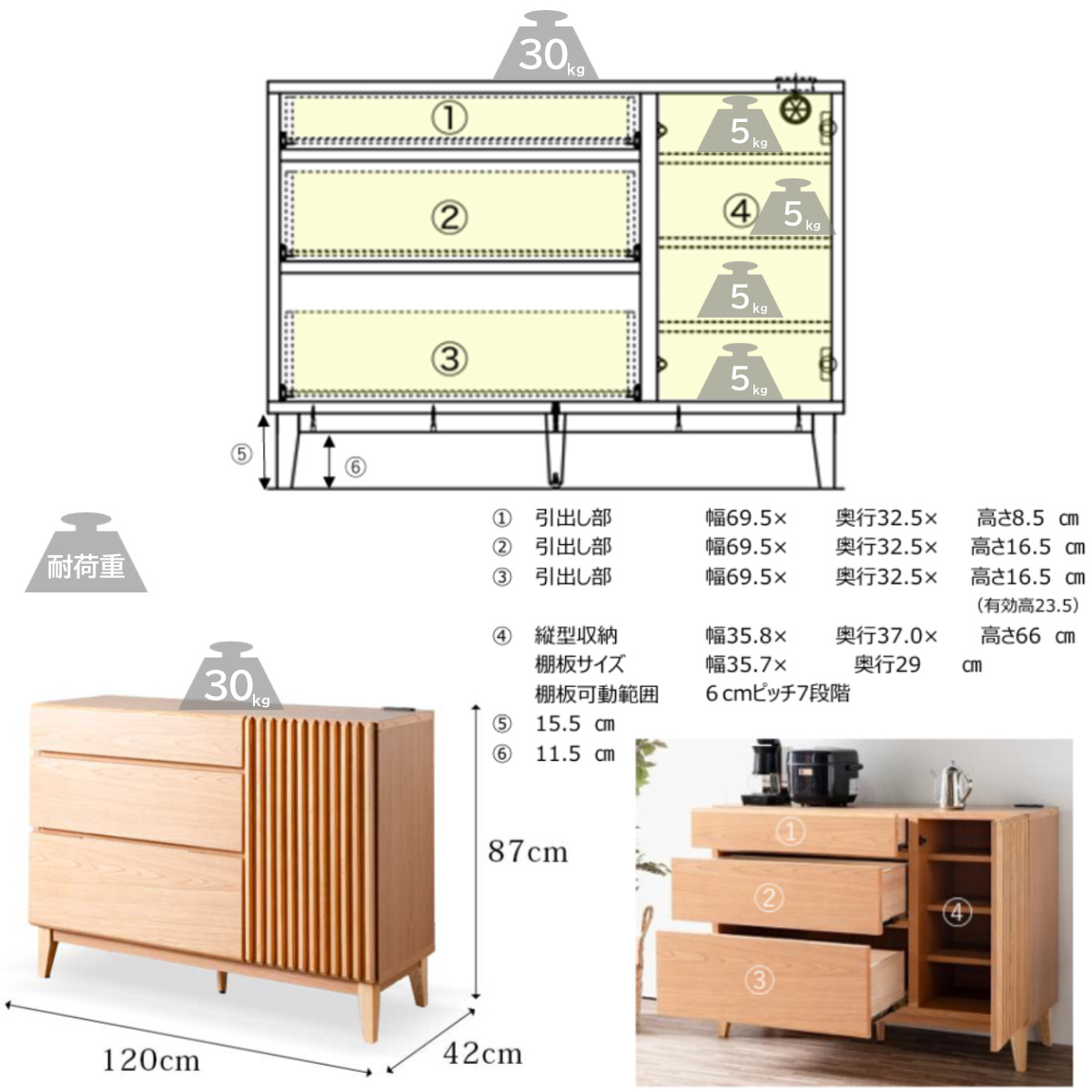 | サイズ | 約 幅120×奥行42×高さ87(cm) |