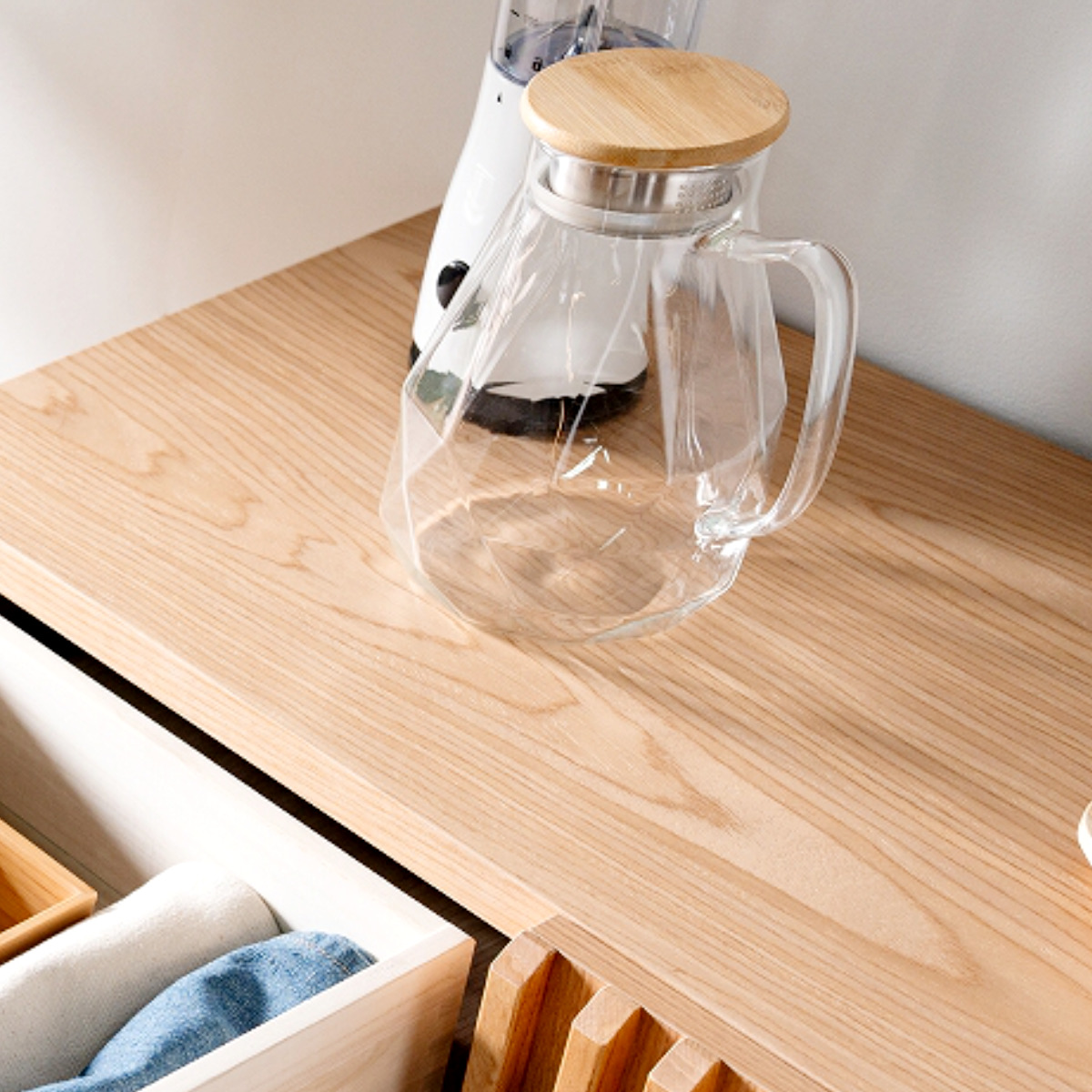 - 天板・前板:天然木工芸突板 ルーバー・脚:天然木