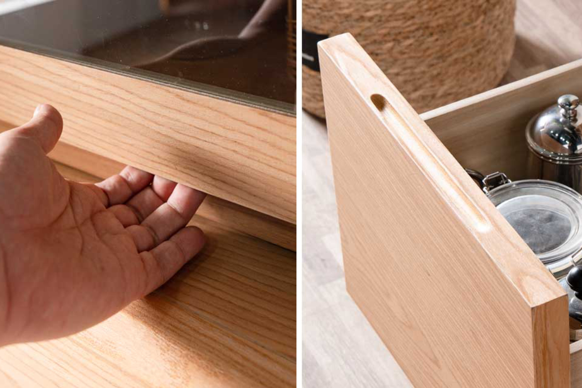 取っ手のないすっきりとしたデザインで、空間になじむフラットな見た目です。開閉もスムーズです。