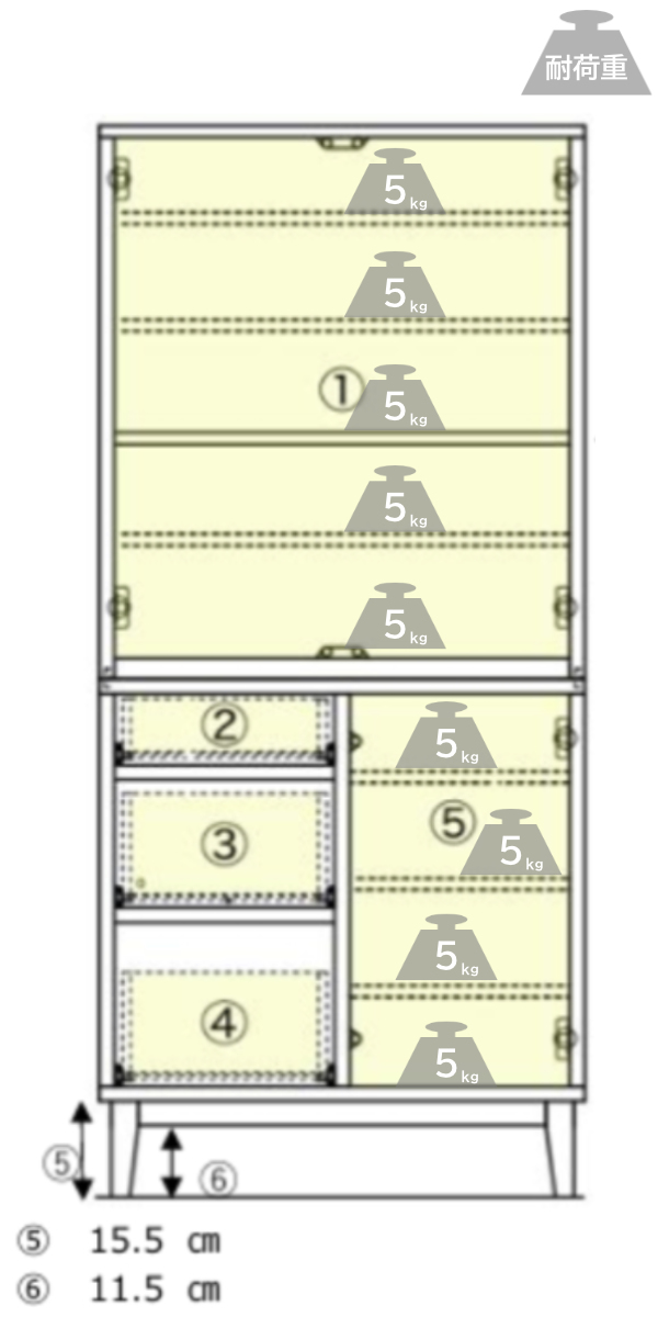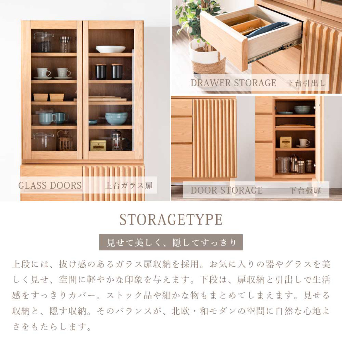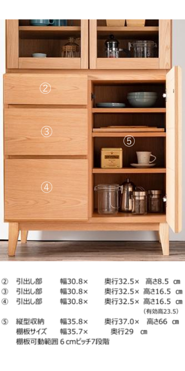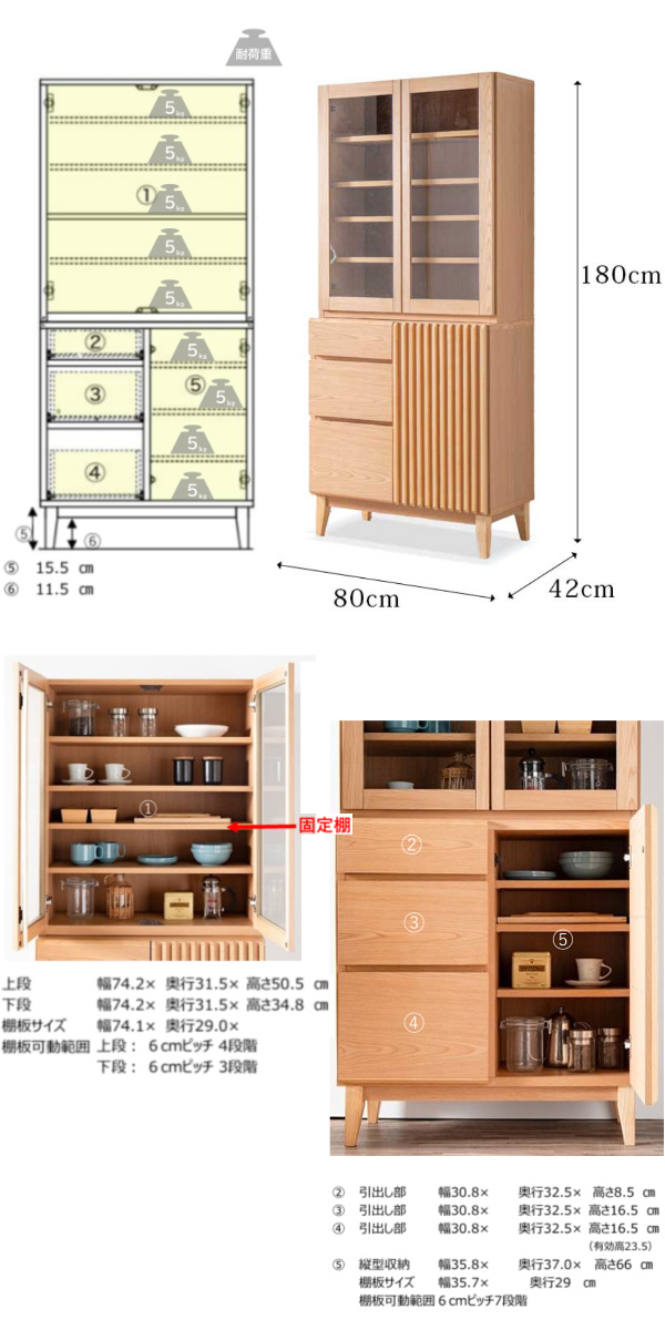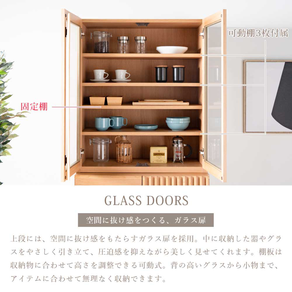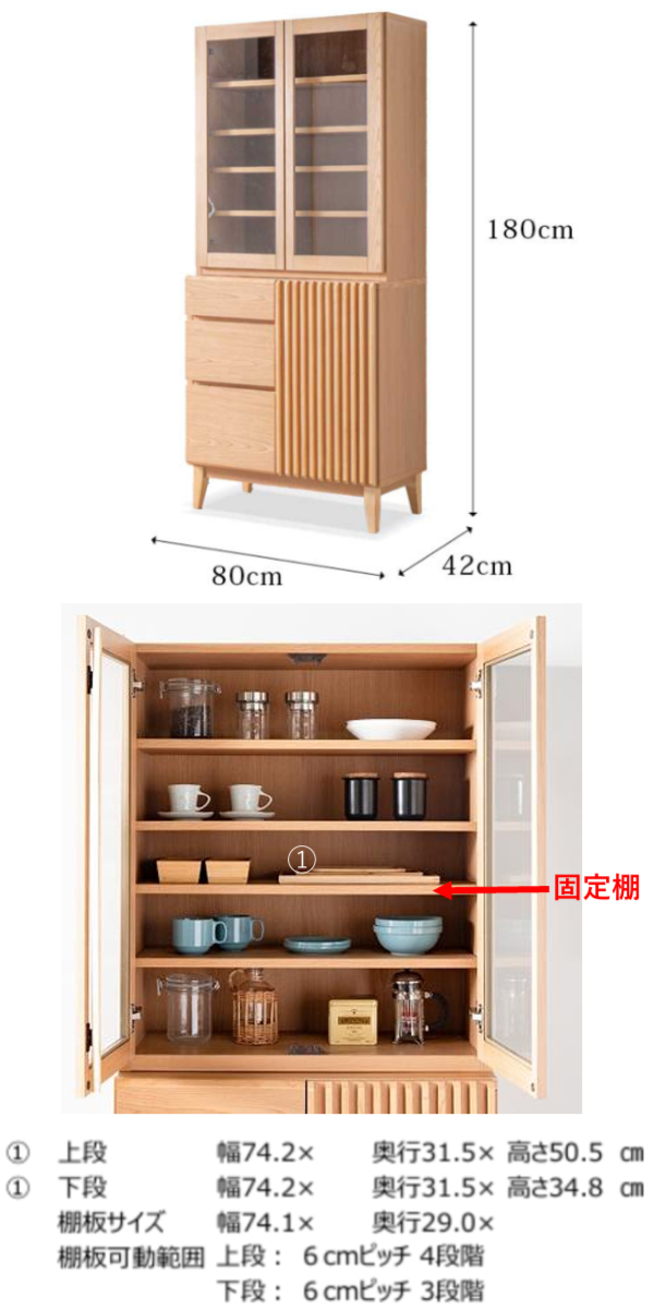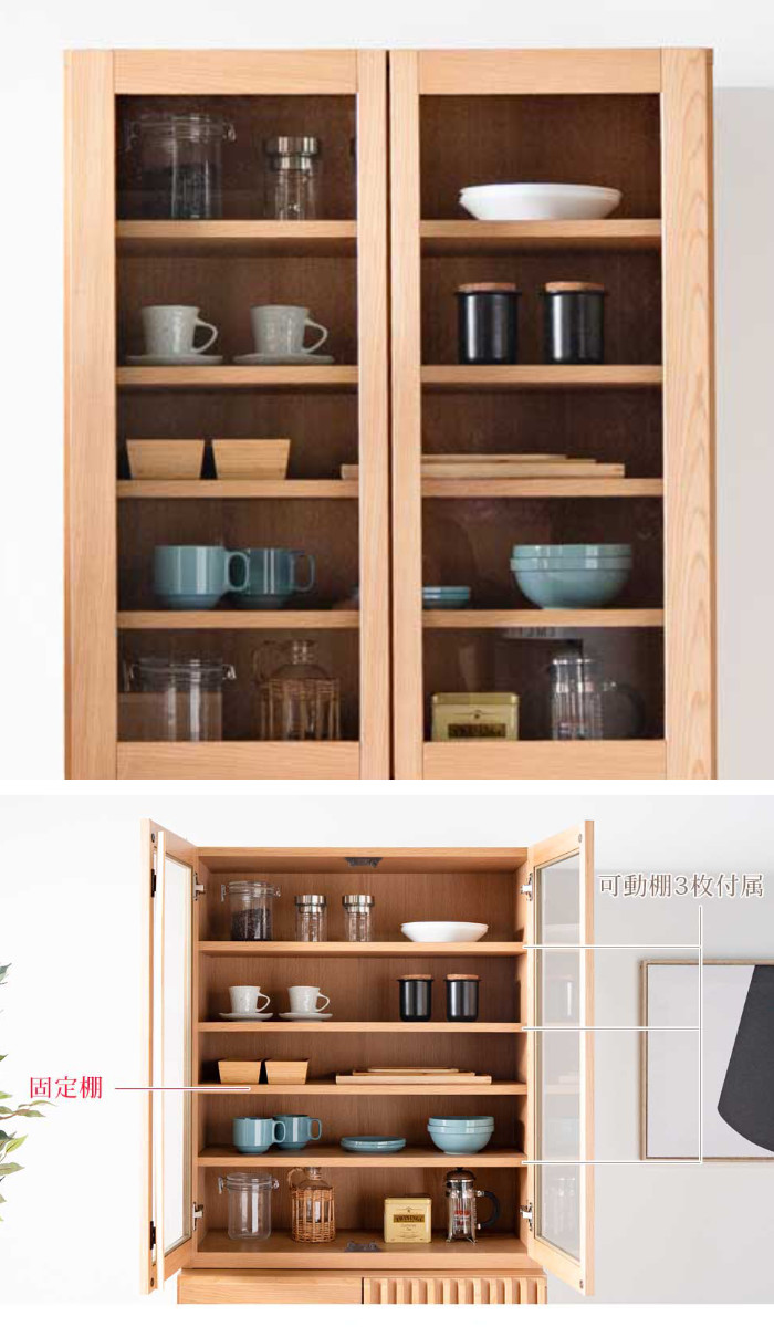 | 内容量 | 1台 付属品:可動棚 ガラス扉内:3枚、下台扉内:3枚 |
