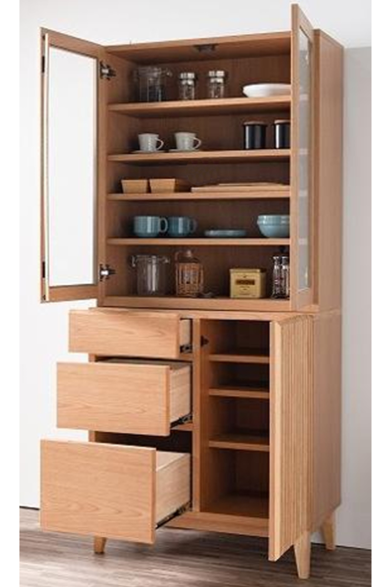 キッチン周りの食器や小物をすっきり収納できる、使いやすい食器棚です。