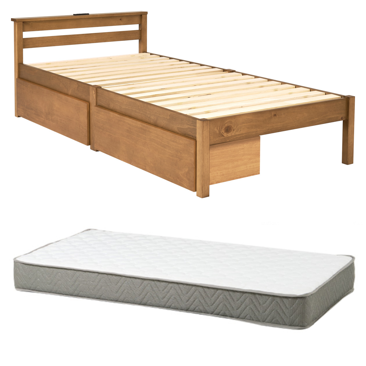 ネジも工具も不要、簡単に組み立てることができるベッドフレームとポケットコイルマットレスのセットです。パーツを差し込むだけなので、組み立て家具が苦手な方でもたった3分で組み立てることができます。天然木の温もりが感じられる柔らかなパイン材を使用し、美しい木目と経年による色の変化を楽しめます。