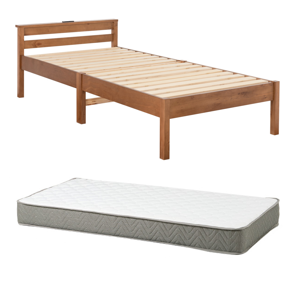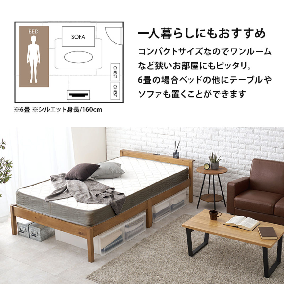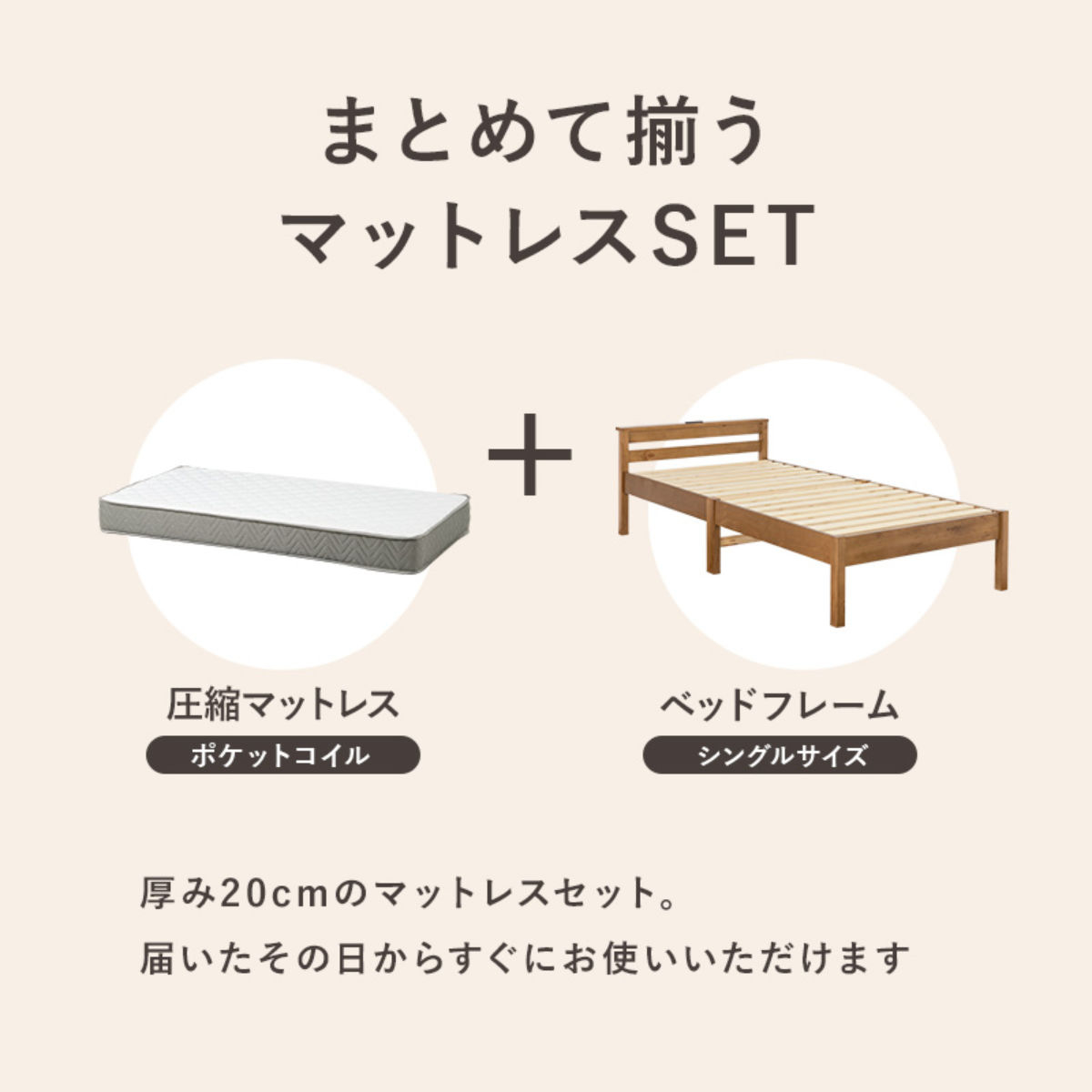 ネジも工具も不要、簡単に組み立てることができるベッドフレームとポケットコイルマットレスのセットです。パーツを差し込むだけなので、組み立て家具が苦手な方でもたった3分で組み立てることができます。天然木の温もりが感じられる柔らかなパイン材を使用し、美しい木目と経年による色の変化を楽しめます。