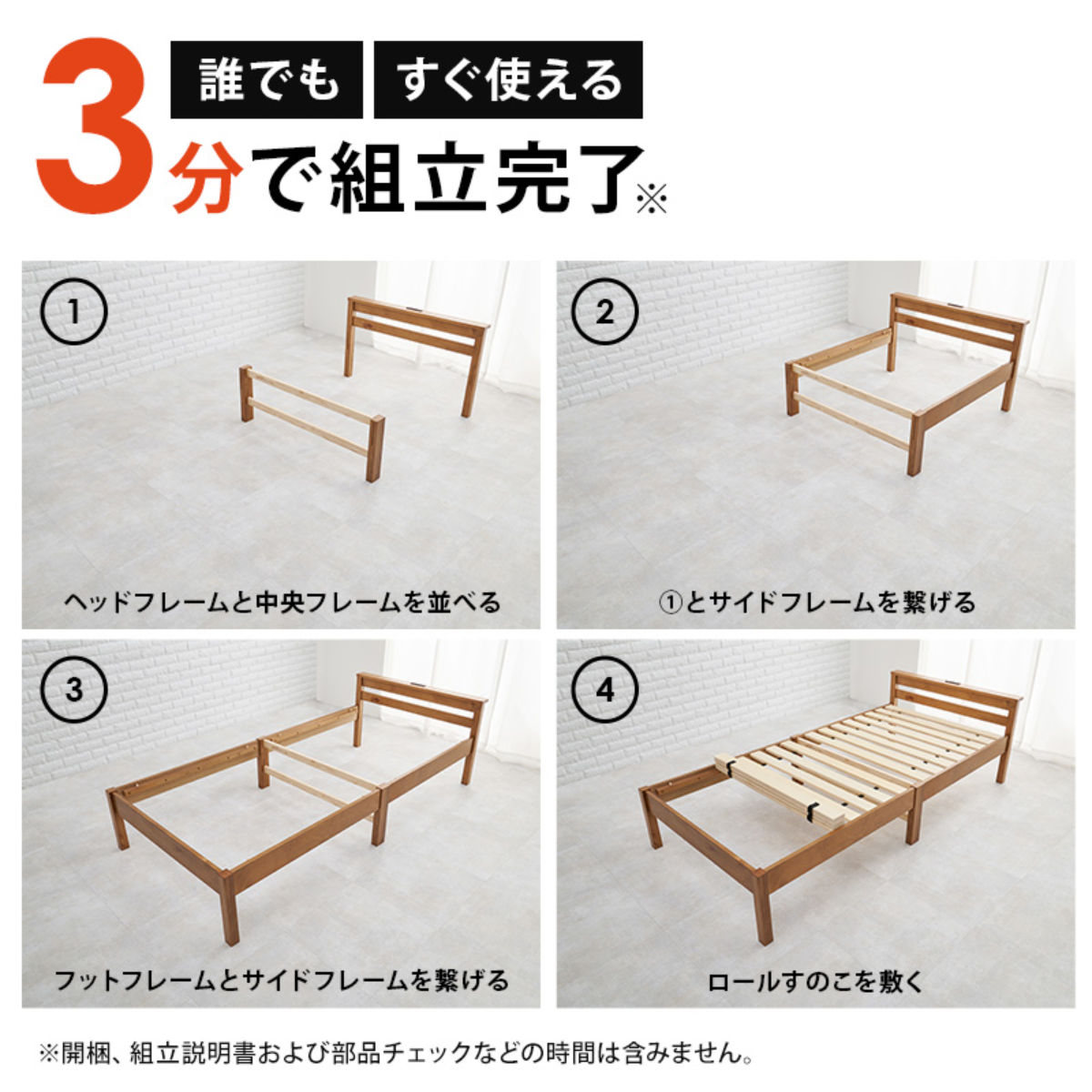 工具不要で簡単組立、3分で完成するマットレス付きすのこベッド