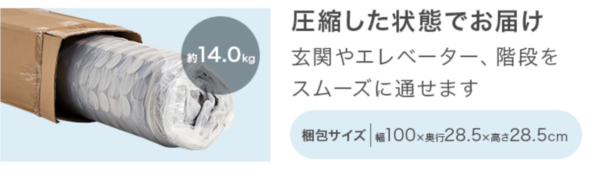 圧縮ロール梱包タイプで搬入設置が楽らく