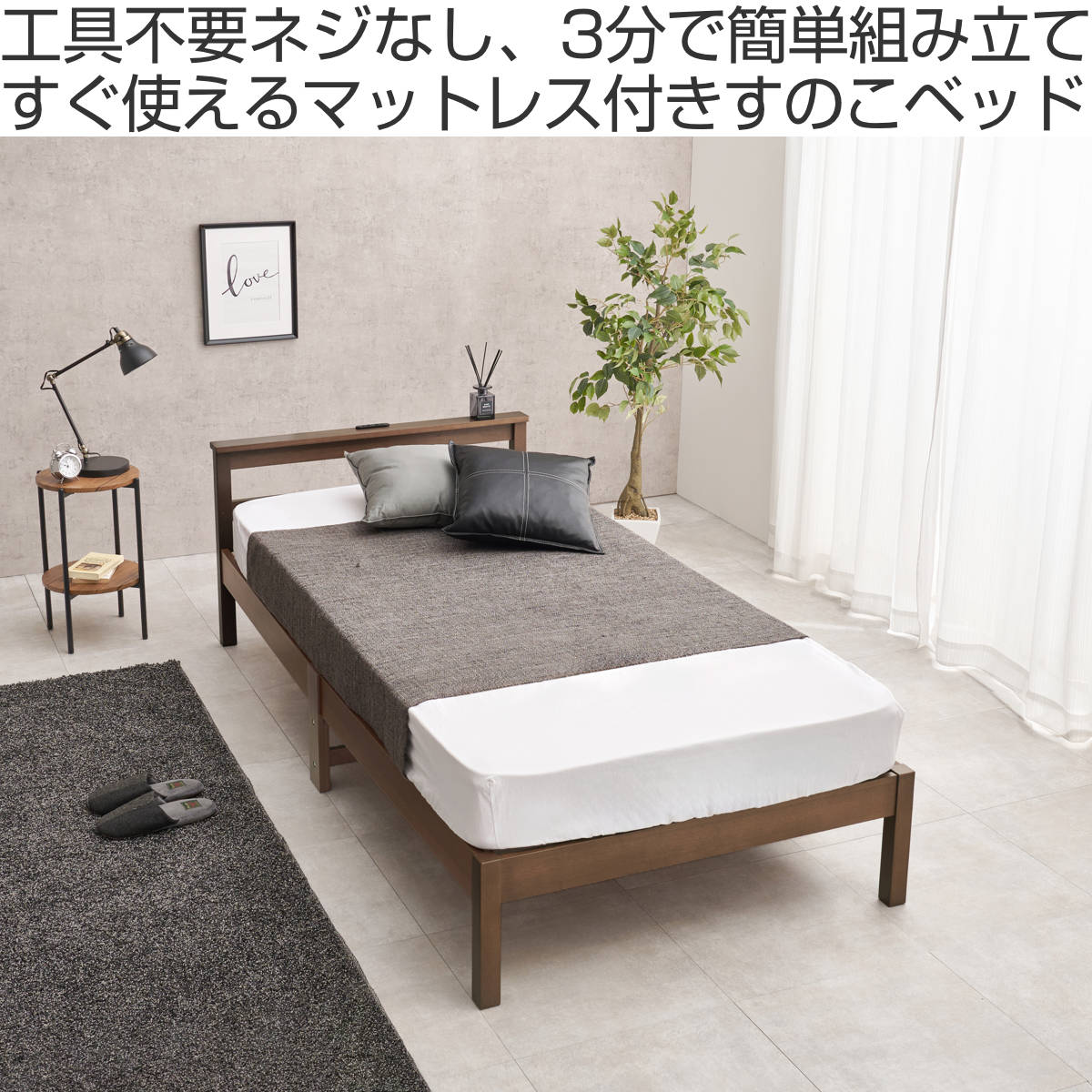 2口コンセントを備えているため、スマホを充電しながら照明や加湿器なども同時に使用できます。ヘッドボードには時計や小物も置けて、使い勝手の良い設計です。