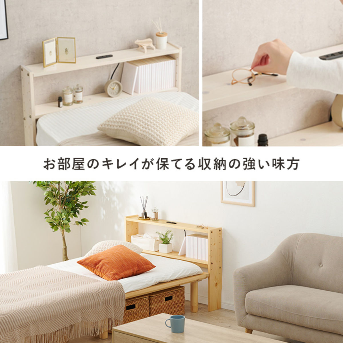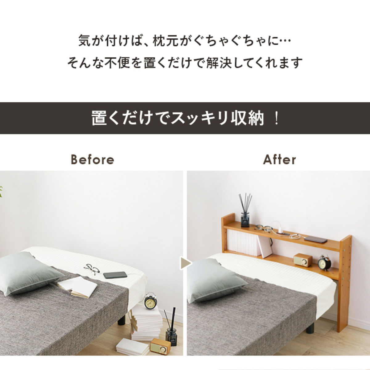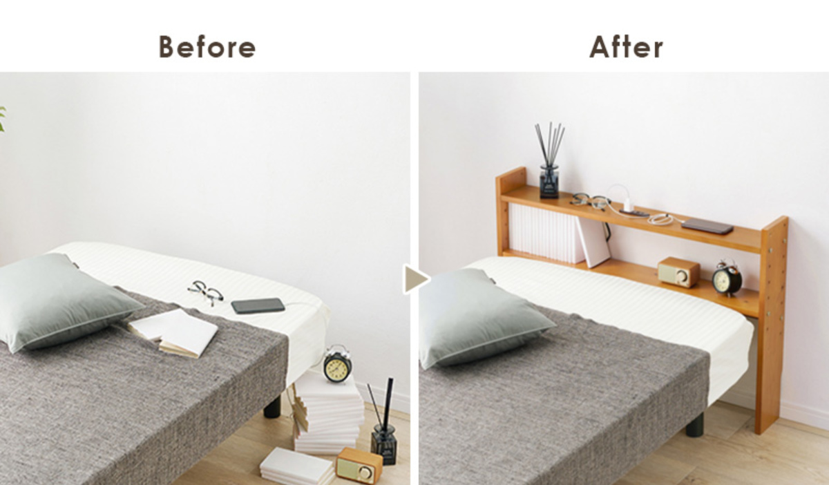 置くだけですっきり片付く後付けヘッドボード