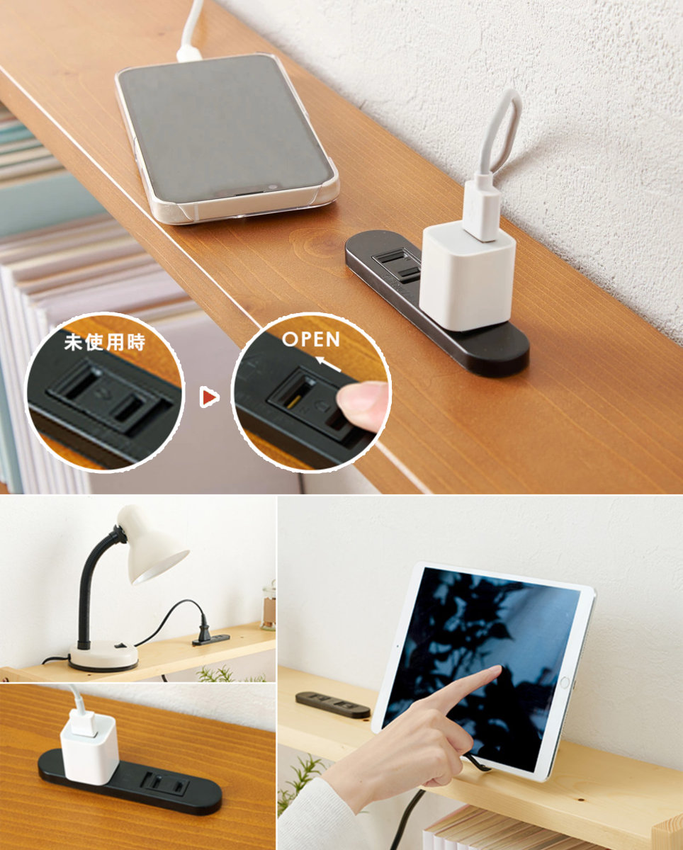 合計1500Wまで対応の2口コンセントを搭載。照明やスマートフォンの充電など、同時に電源を使用できます。未使用時はホコリの侵入を防ぐコンセントカバー付きで、ホコリがたまりやすい枕元でも安心してお使いいただけます。