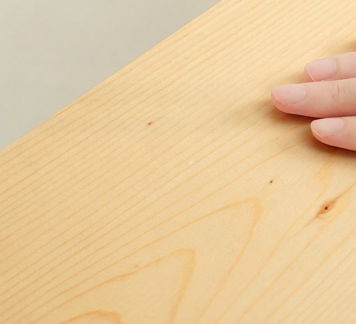 木目シートとは異なる、天然無垢材ならではのやさしくなめらかな手触りが魅力です。木目や節の表情には一つひとつ個体差があり、天然木ならではの風合いとしてお楽しみいただけます。