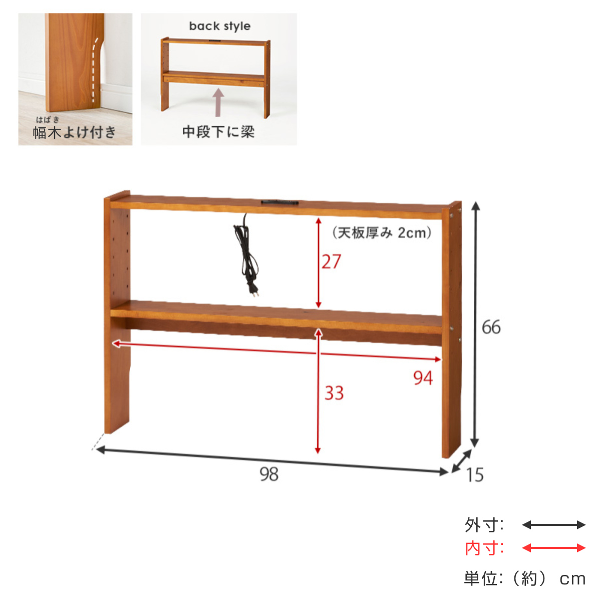 | サイズ | 約 幅98×奥行15×高さ66(cm) |