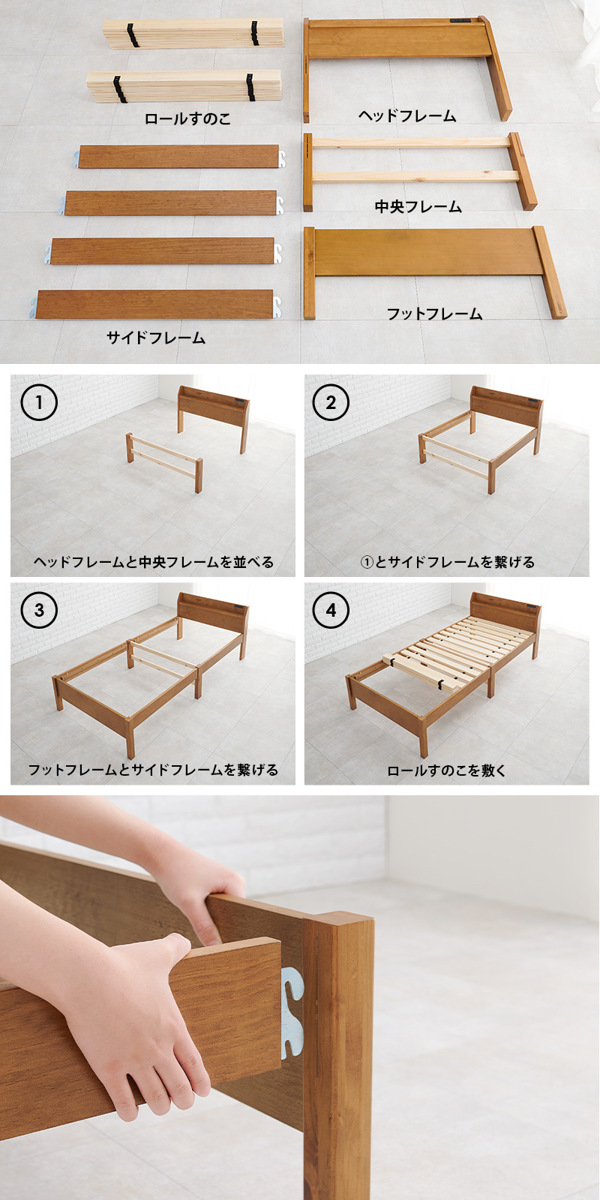 工具不要で簡単組立、3分で完成するマットレス付きすのこベッド