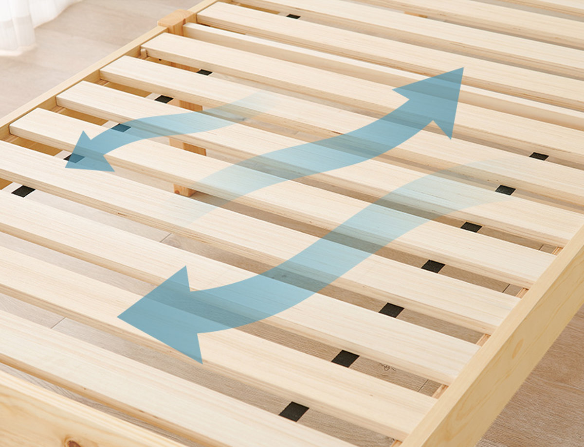 すのこ床で空気がしっかり通り、湿気や汗を逃がして快適な寝心地をキープ。マットレスや布団を清潔に保ちます。