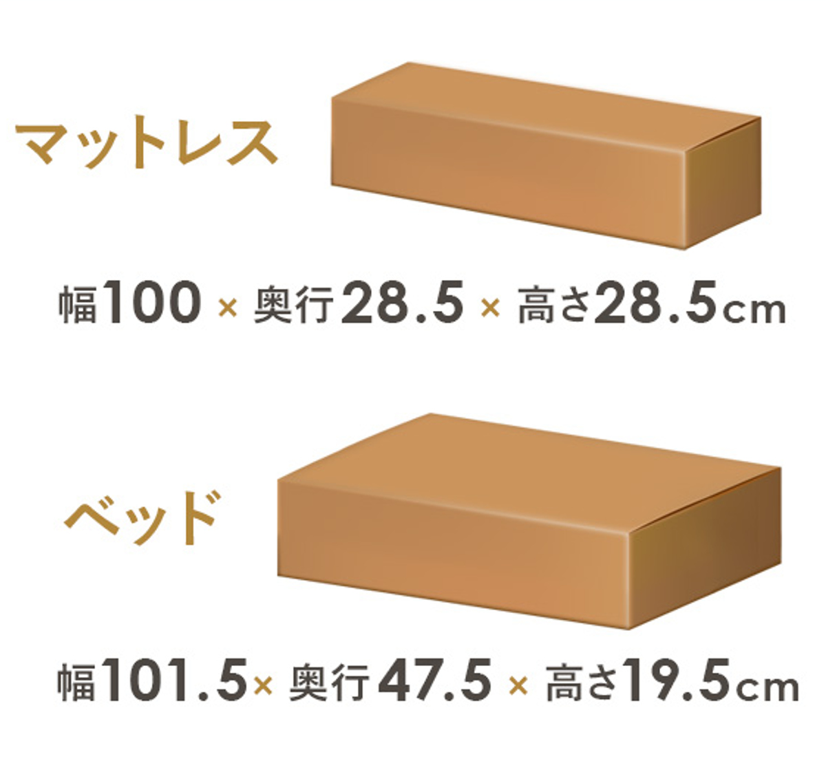 本商品はマットレスとベッドを2梱包(段ボール2箱)でお届けします。ご購入前に、玄関や通路、エレベーターなどへの搬入が可能か事前にご確認ください。