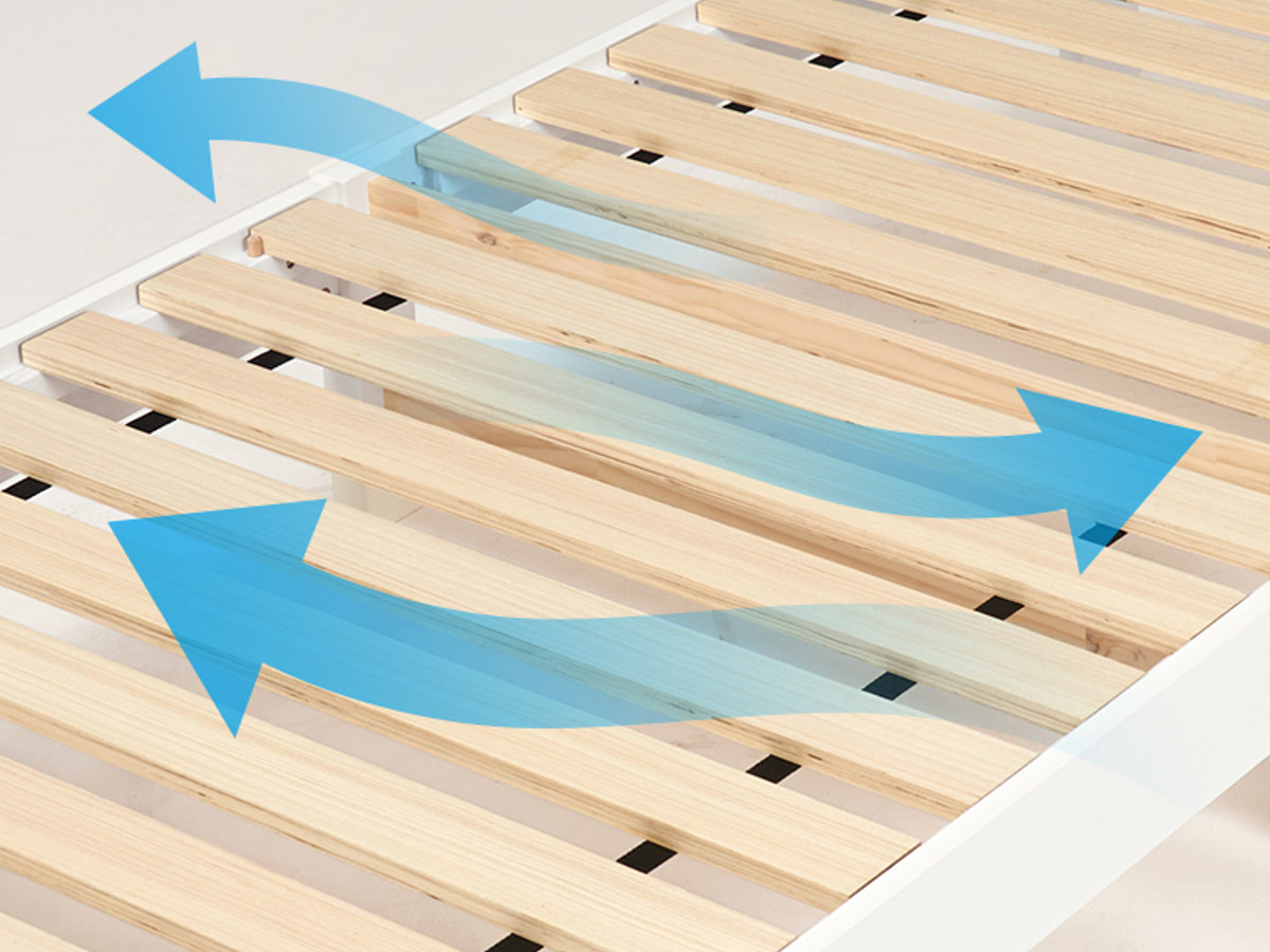 床板はロールすのこを採用しています。通気性が良いため汗や湿気を逃がして、寝具を清潔に保ちます。