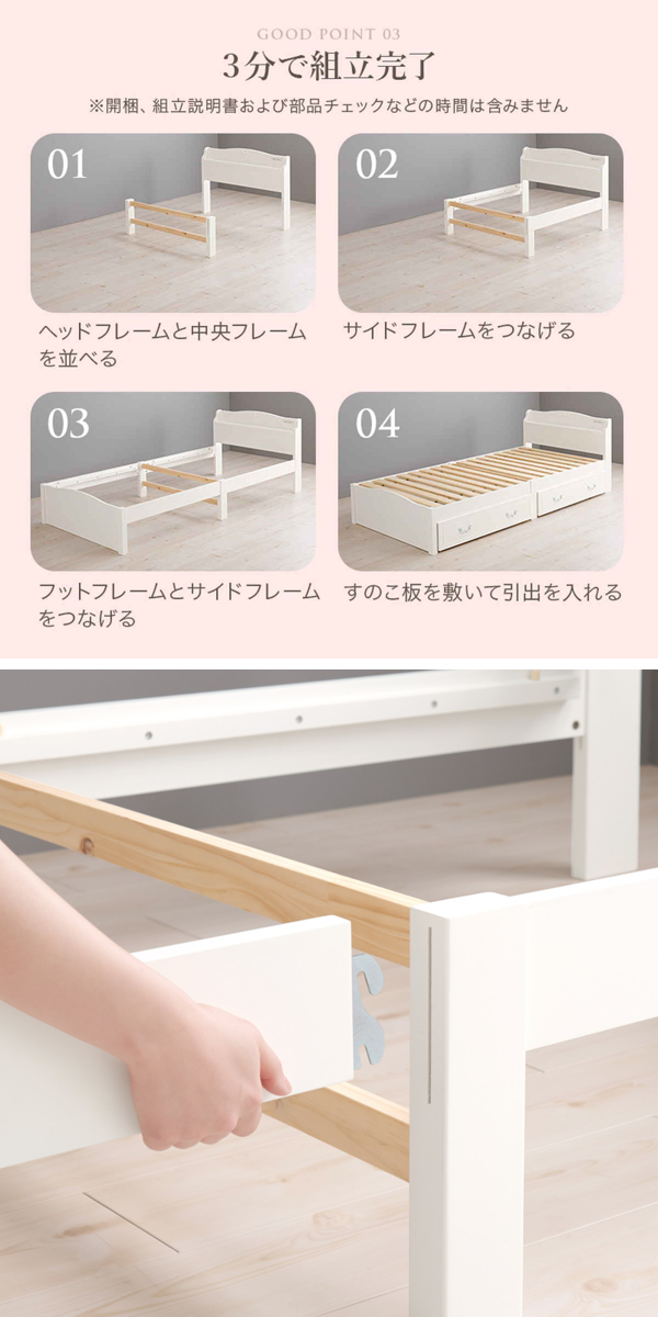 女子の願いを叶える、工具不要の簡単組み立てベッド