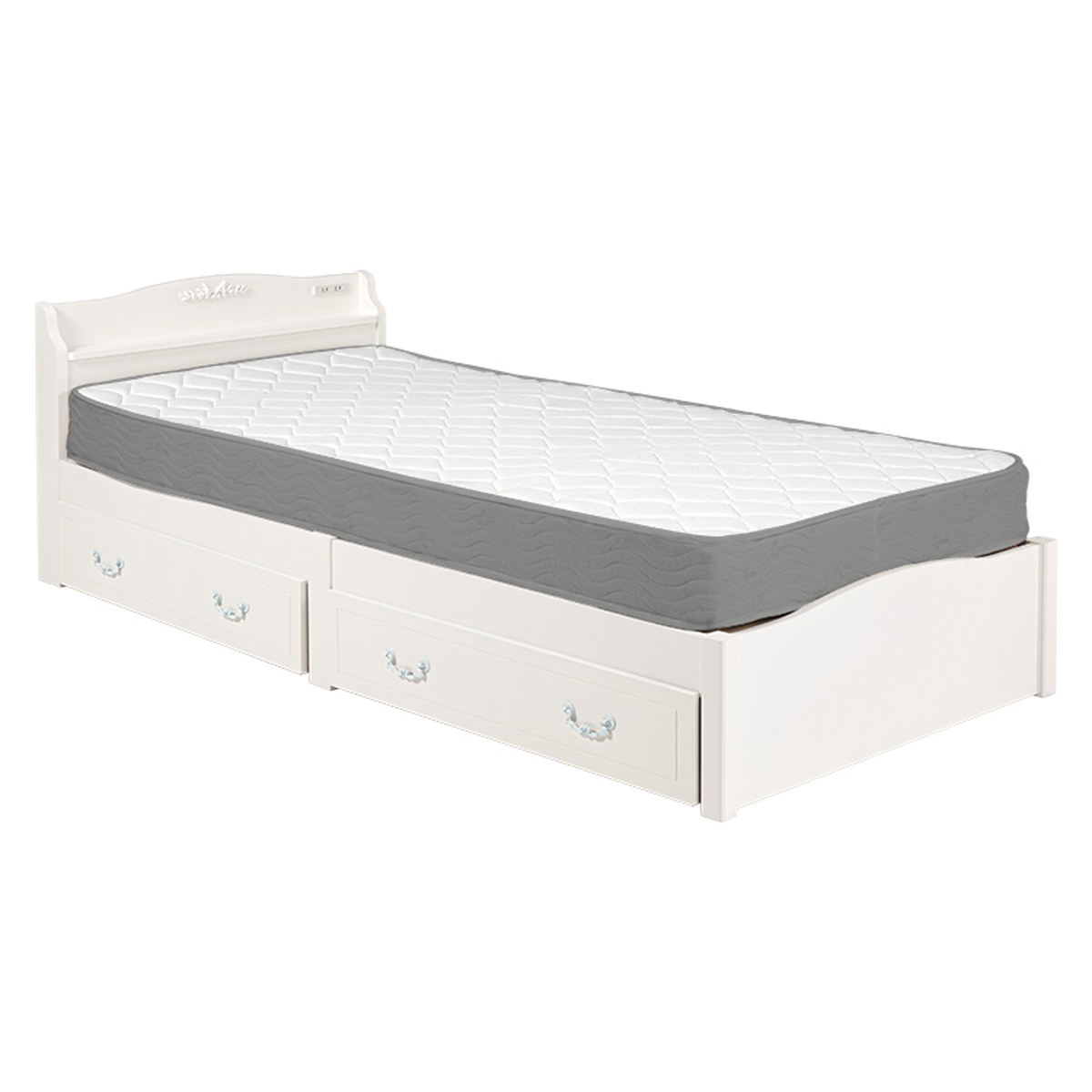 | 材質 | ベッド:〈主材〉天然木(パイン材) マットレス:〈主材〉ボンネルコイル(コイル数:320個)、〈張地〉ポリエステル |