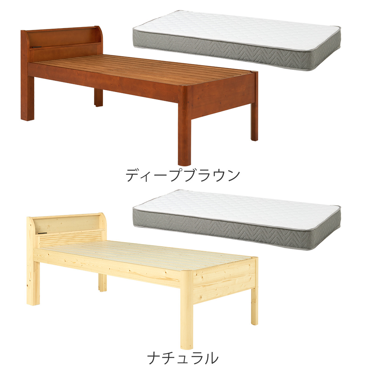 ![]() ベッドフレーム単品 | ![]() ボンネルコイルマットレス付き | ![]() ポケットコイルマットレス付き 【▲このページの商品】 |