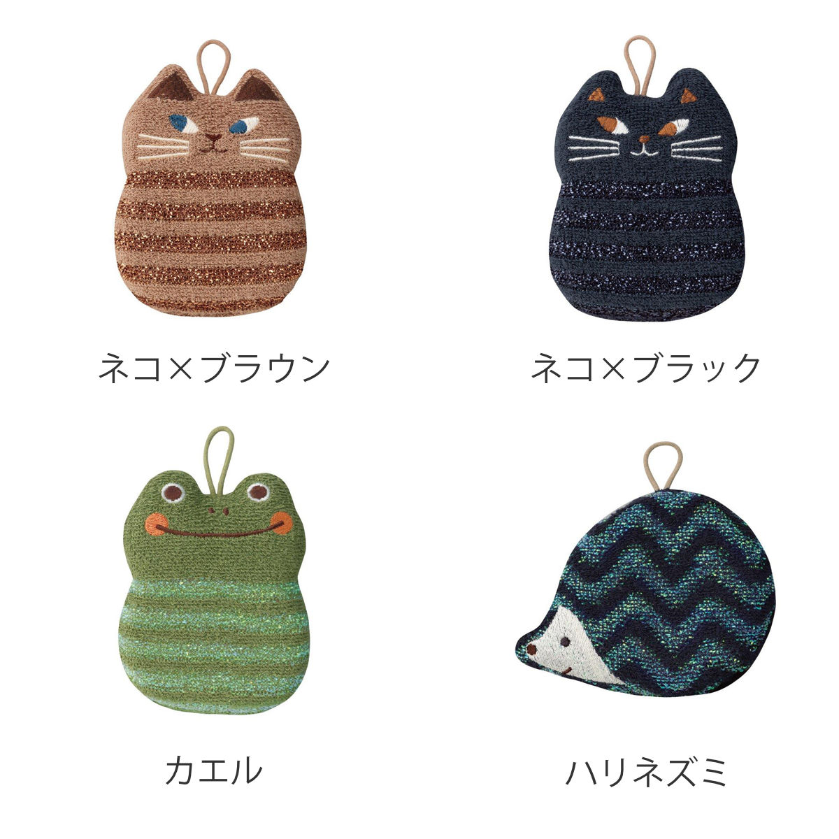 | 種類 | ネコ×ブラウン、ネコ×ブラック、カエル、ハリネズミ |