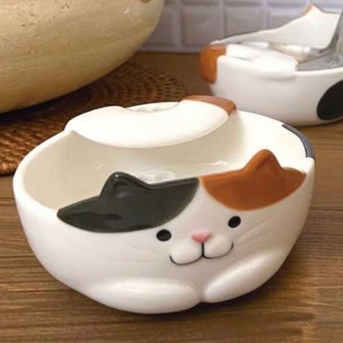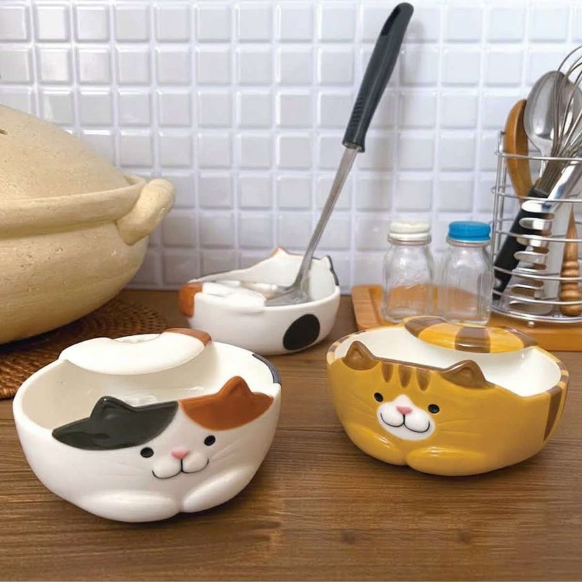 キッチンにちょこんと座る かわいい猫のお玉ホルダー