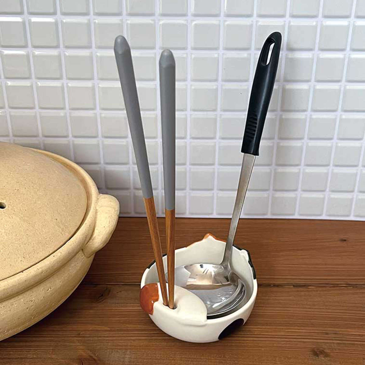 お鍋のそばでじっと待機 かわいい猫型のお玉ホルダー
