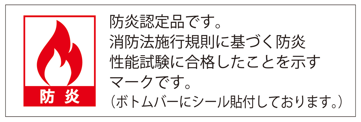 万が一の際に力を発揮する防炎機能付きです。引火すると黒くこげますが燃え広がりにくく、安心です。一般のご家庭はもちろん、店舗や公共施設でのご使用にもおすすめです。
