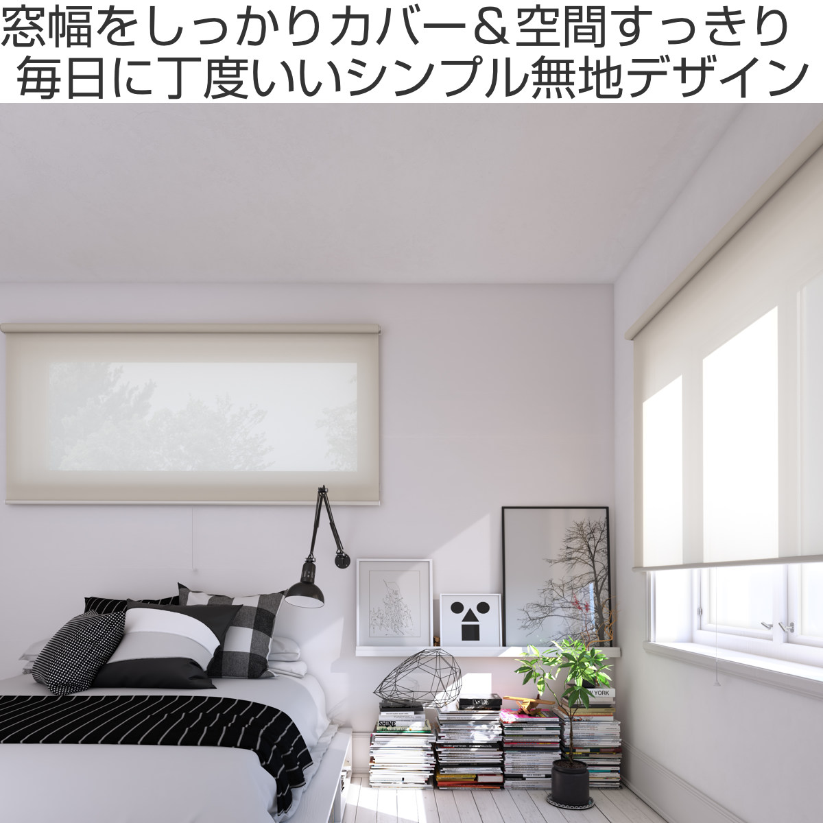 シンプルな無地のデザインで、どんなインテリアにも自然に馴染むロールスクリーンです。腰高窓から掃き出し窓まで使いやすい幅90×高さ180cmサイズです。リビングや寝室など幅広い空間で使用できます。使わない時はすっきり収納できます。