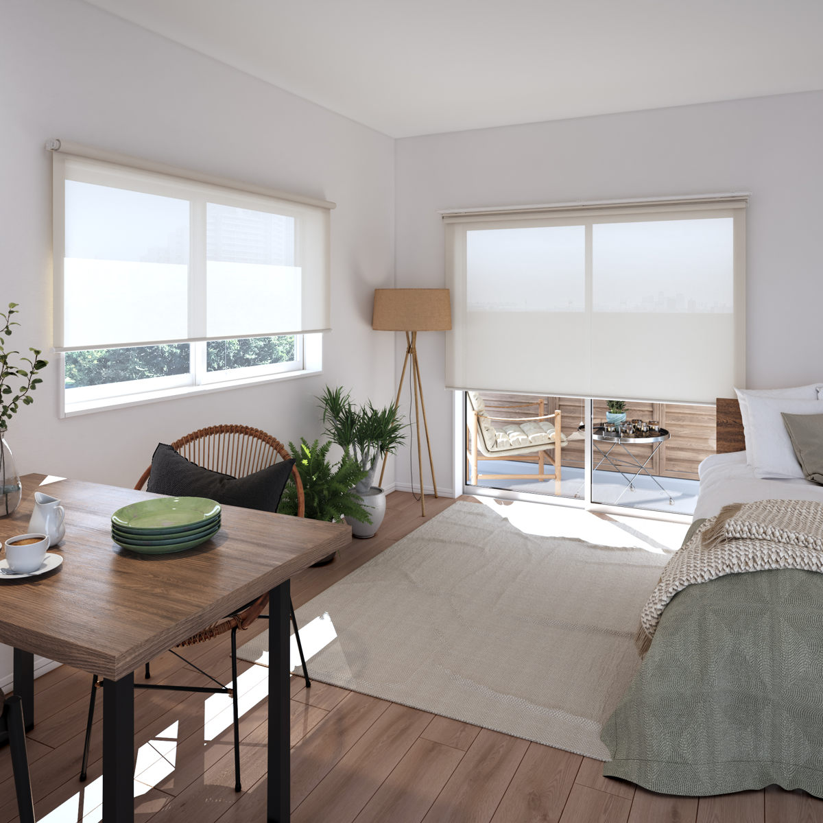 使わない時はコンパクトに巻き上げておくことが可能です。窓まわりがごちゃつかず、空間を広く、清潔感のある印象に演出します。カーテンのようなヒダがないため、ホコリがたまりにくいのもポイントです。