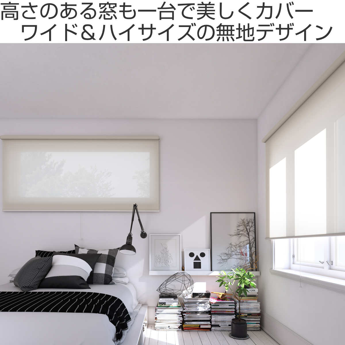 掃き出し窓や天井高のある窓にも使える、シンプル無地デザイン