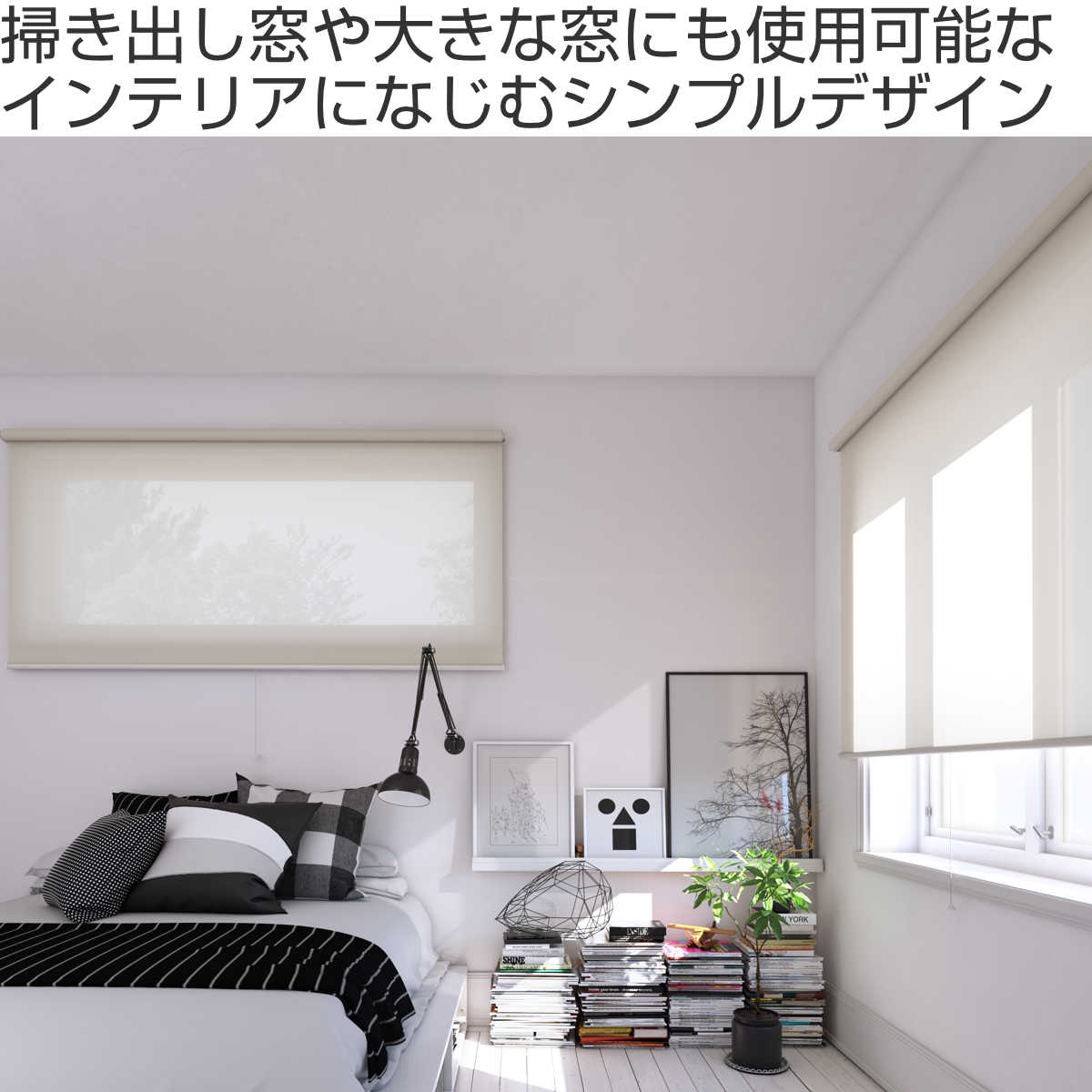 リビングの掃き出し窓や大きめの窓に最適な、170cm幅でワイドなサイズのロールスクリーンです。シンプルな無地デザインで、どんなインテリアにも自然に馴染みやすく、空間全体をすっきりと整えます。