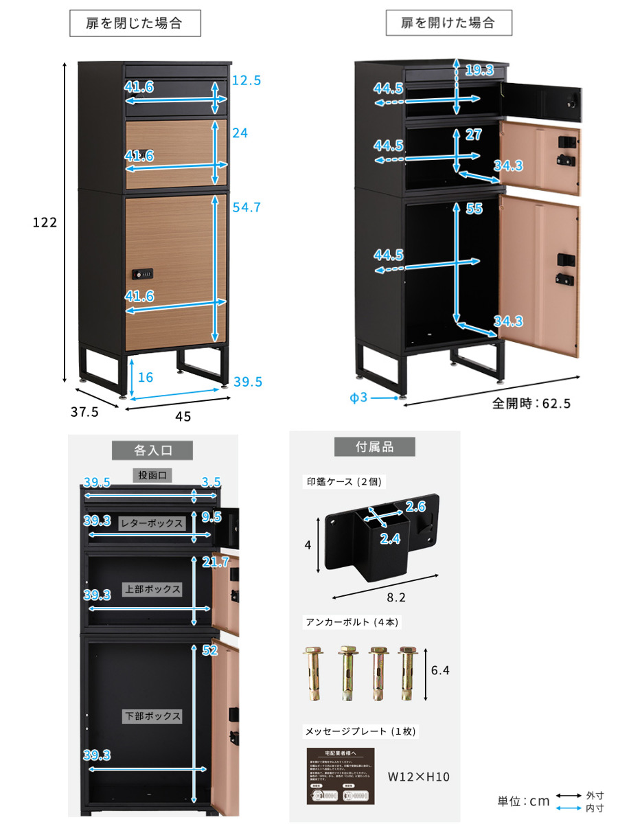 郵便受け取出口サイズ:約 幅39.3×奥行34.3×高さ9.5(cm)