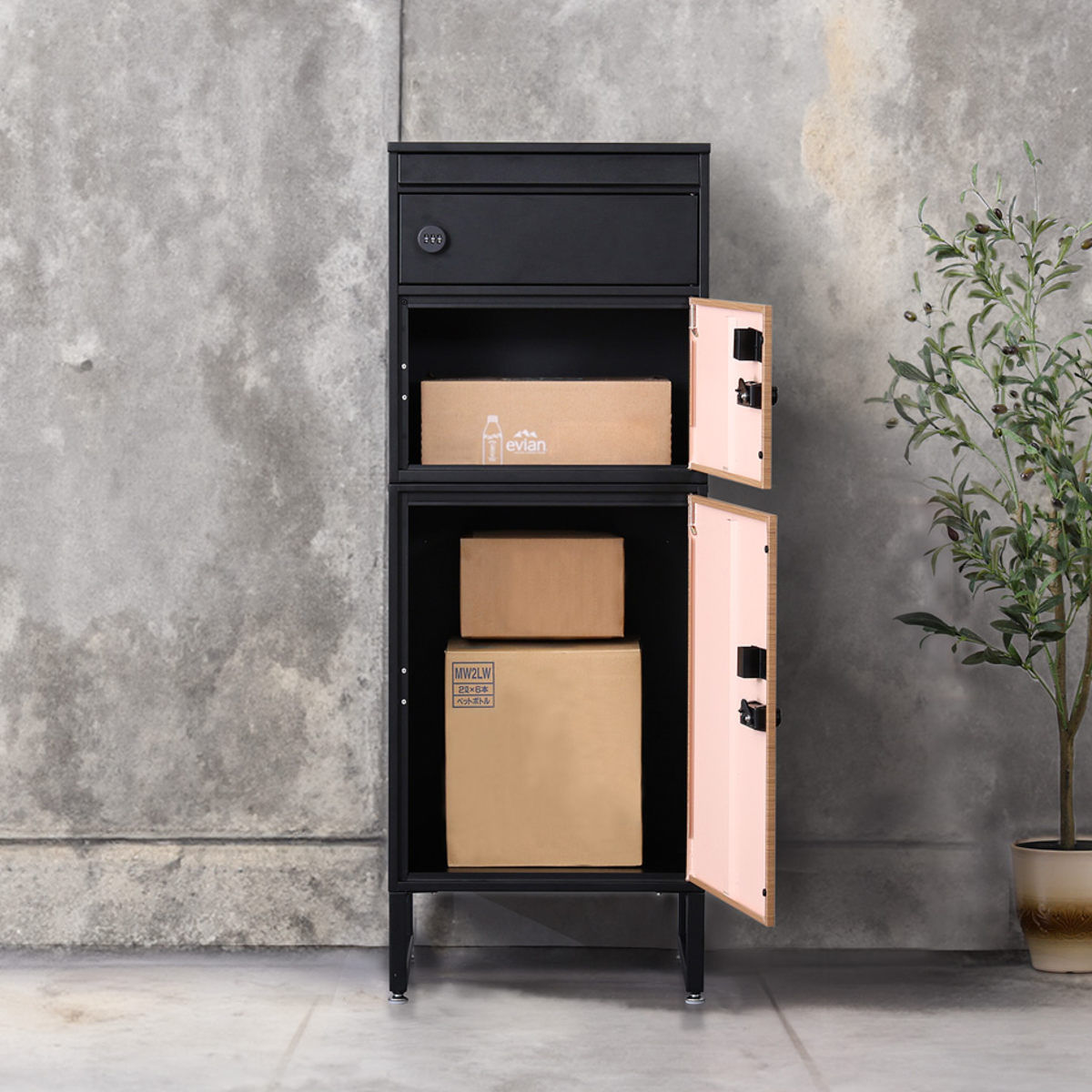 郵便ポスト+大小2つの宅配ボックスの一体型
