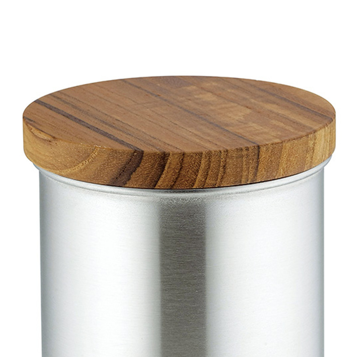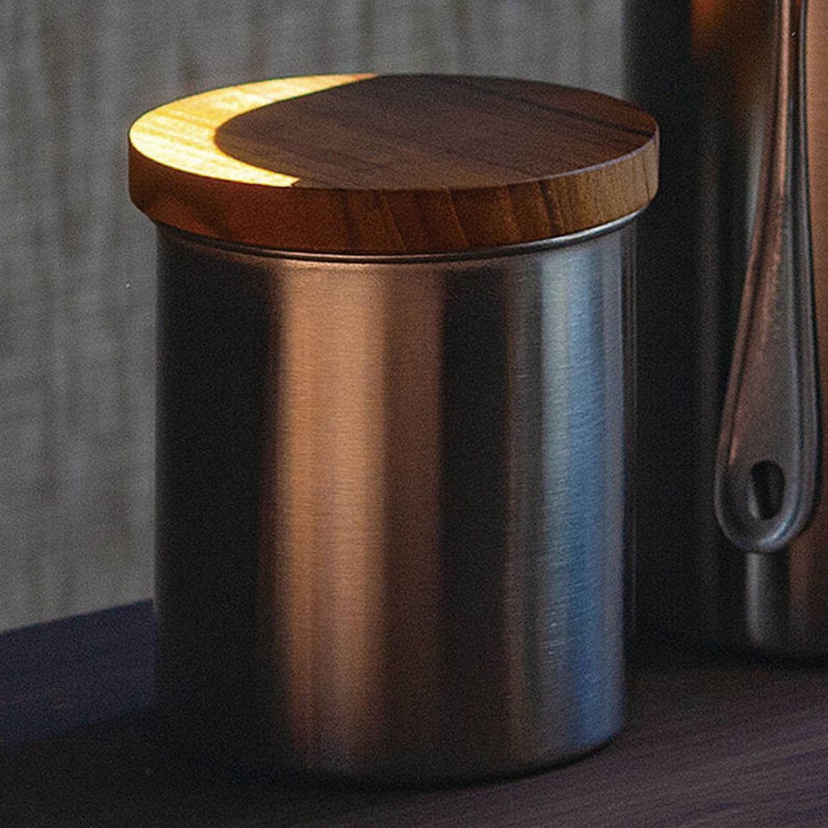 パッキン付きのフタが食品を、光や湿気から守り劣化を防ぎます。また温かみのある木製フタはアクセントとなり、キッチンやテーブルに自然に馴染むデザインです。